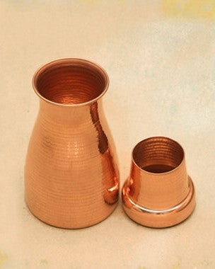 The set includes a carafe and matching glass that sits neatly on top—functional, space-saving, and elegant. It’s perfect for storing water overnight, as Ayurveda recommends consuming copper-charged water after 6–8 hours for its detoxifying and balancing benefits.