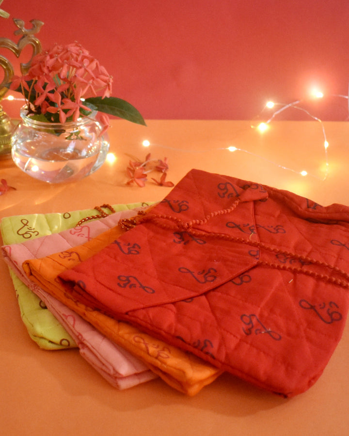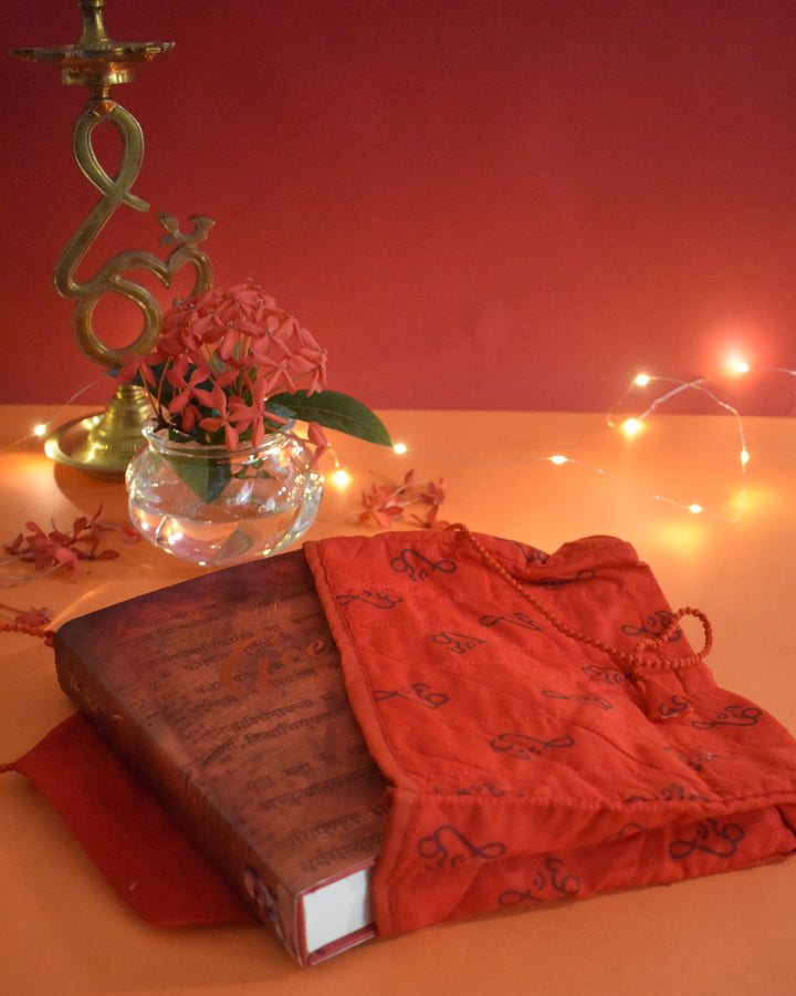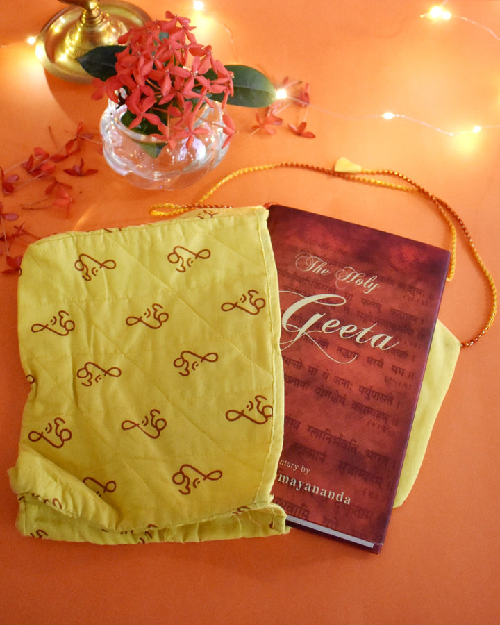 Handmade by women of the Guru Kripa Association in Sidhbari, Himachal Pradesh, each piece carries a touch of love, faith, and empowerment. Whether you're wrapping the most treasured and read Holy Geeta by Swami Chinmayananda or gifting a sacred text to someone special, this book cover adds meaning and grace to the gesture.