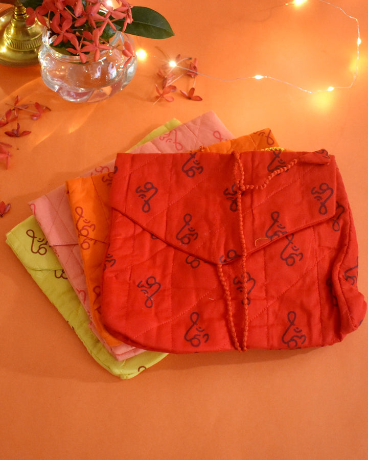 Protect your sacred texts with reverence and style using these beautifully handcrafted book covers. Made from soft quilted cotton and printed with Swami Chinmayananda’s iconic “Om,” each cover is designed to cradle your spiritual books with care and devotion.