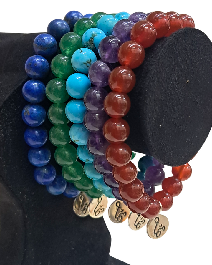 Material: Natural semi-precious stones + silver-tone Om charm
