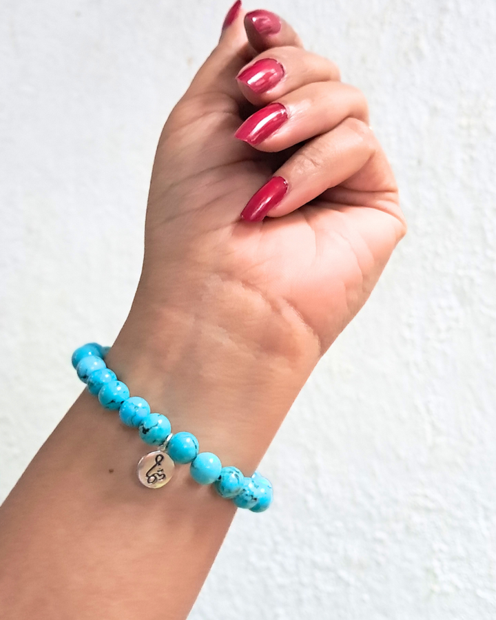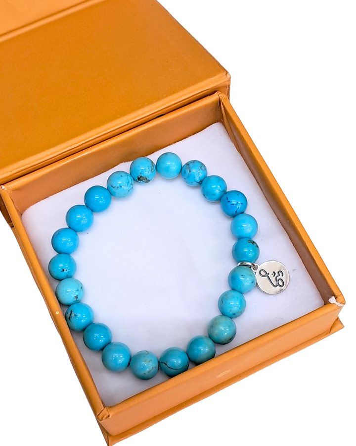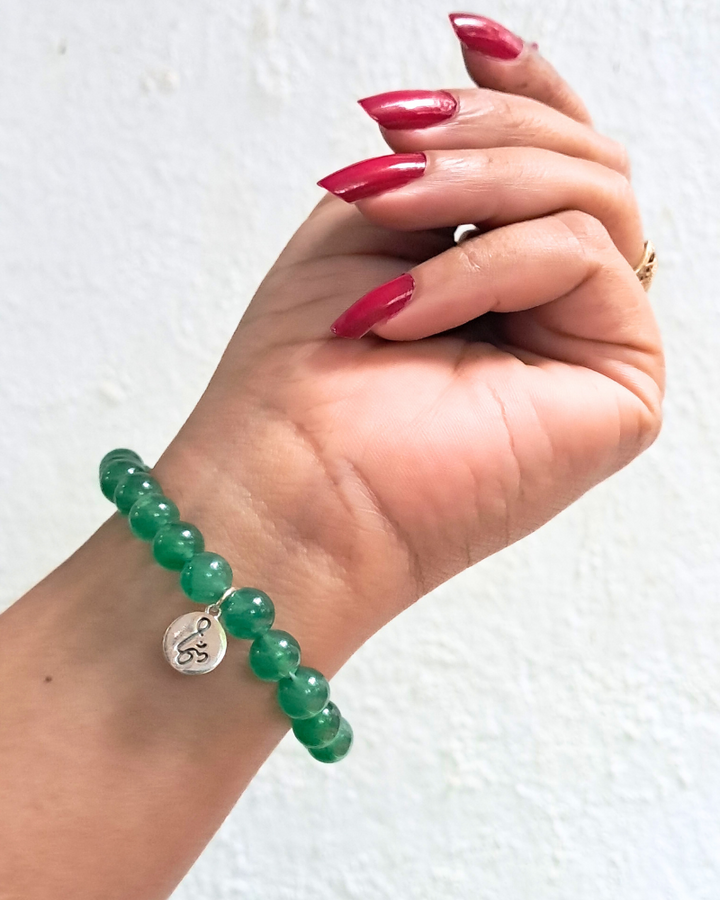 Bracelet: Semi-Precious Bead with Pure Silver Om Charm