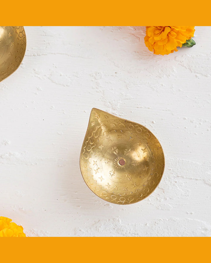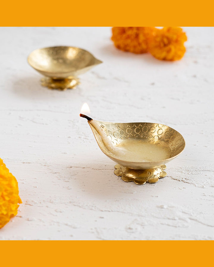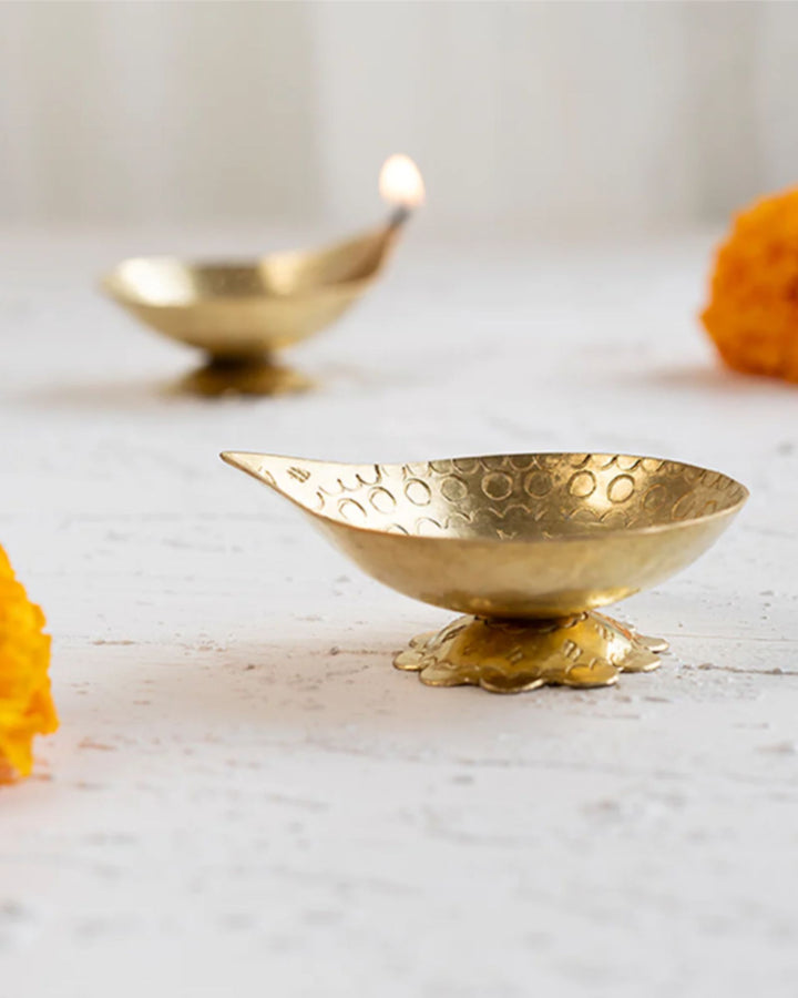 • Set of 2 brass diyas, handcrafted using traditional techniques