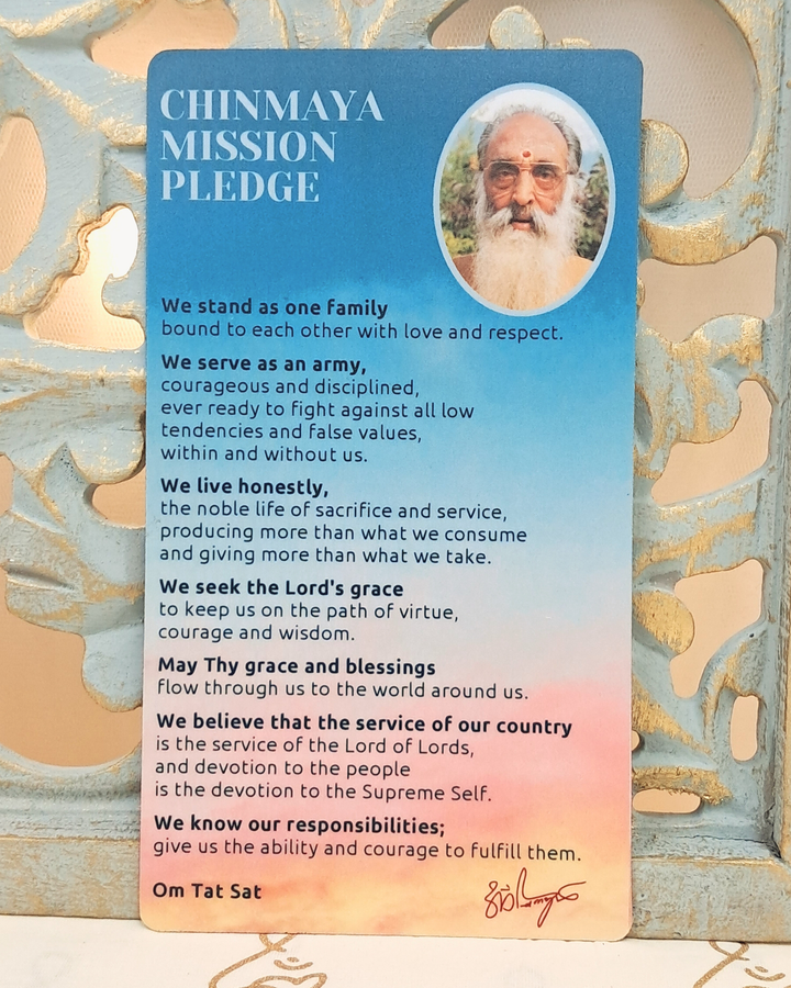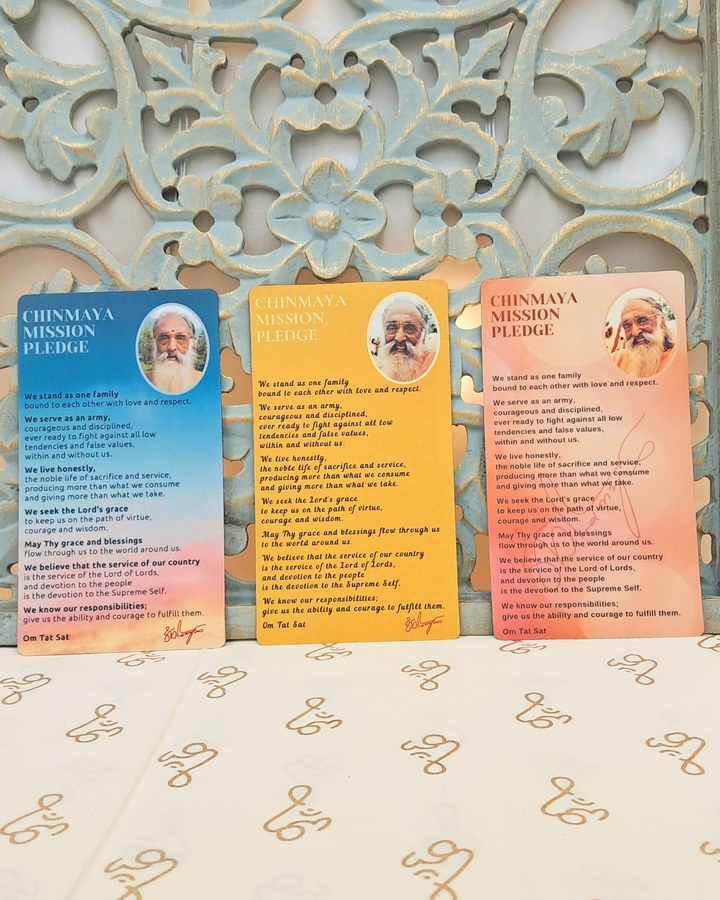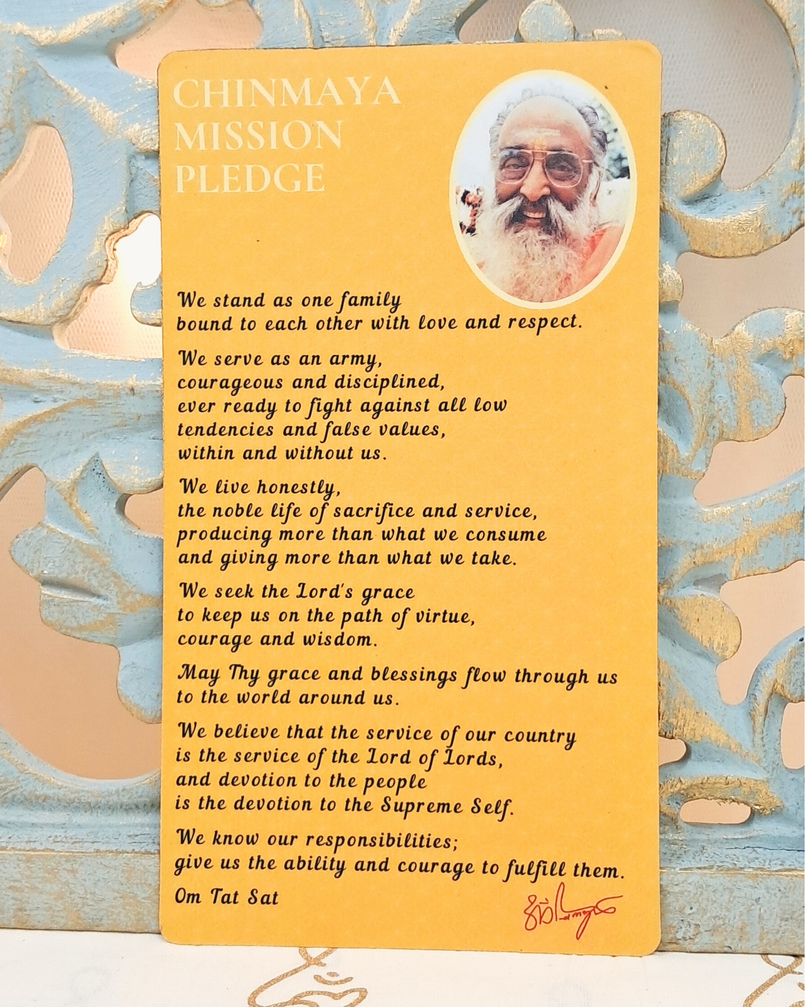 - Full Chinmaya Mission Pledge – A clear and beautifully printed layout for daily reflection.