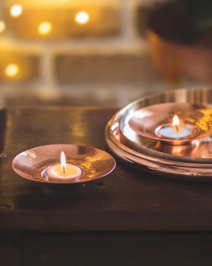 Its clean, circular design and soft copper shine make it perfect for every setting—from festive corners and intimate dinners to thoughtful gifts and corporate hampers. Whether you're lighting it for celebration or calm, it brings beauty without fuss.