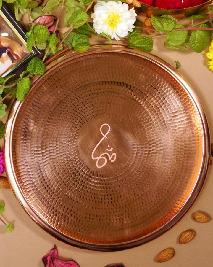 Copper Puja Thali with Om Large - Hand-Beaten Prayer Platter