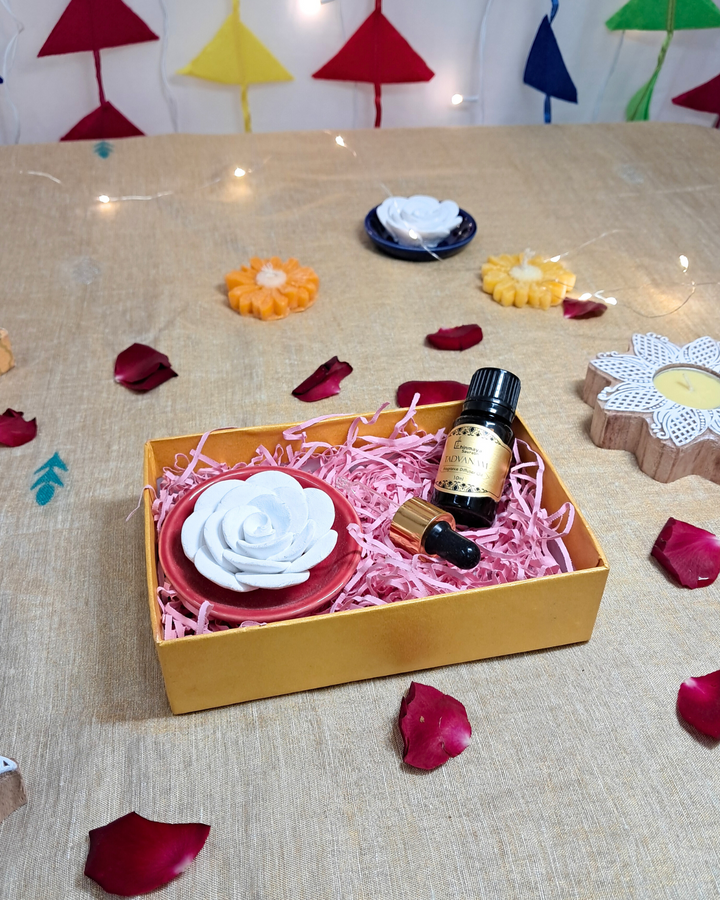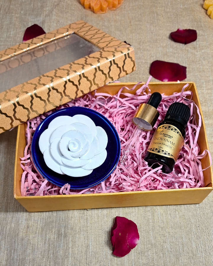 Chinmaya Saurabh Gift Set - Ceramic Flower Diffuser with Essential Oil