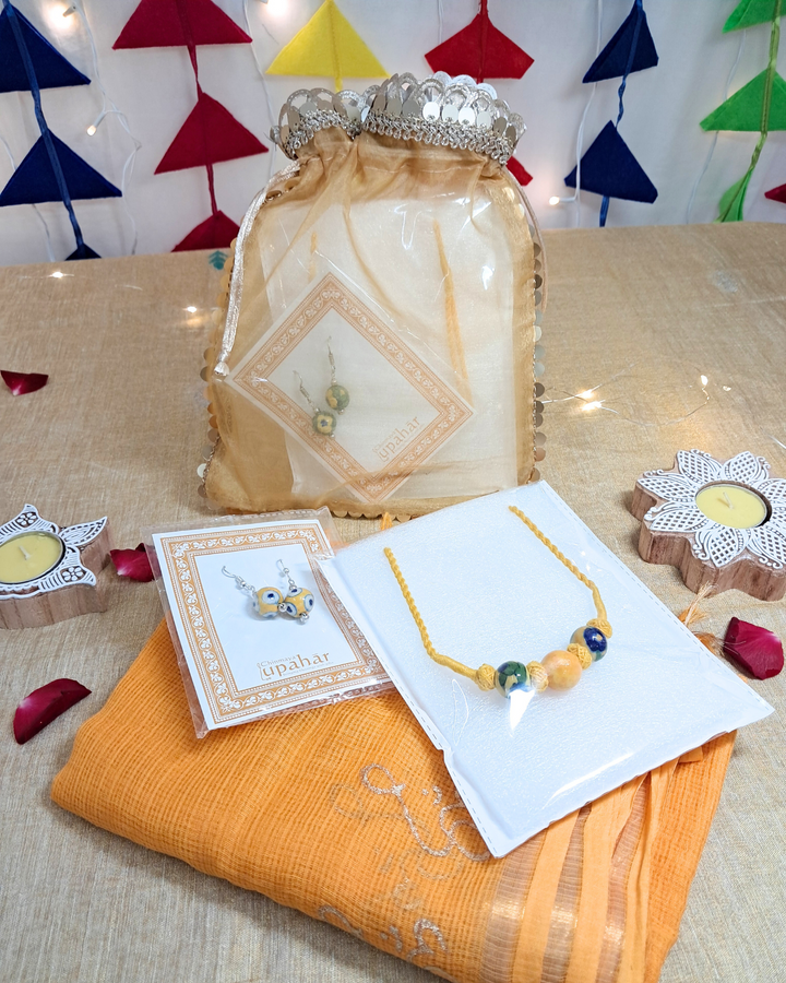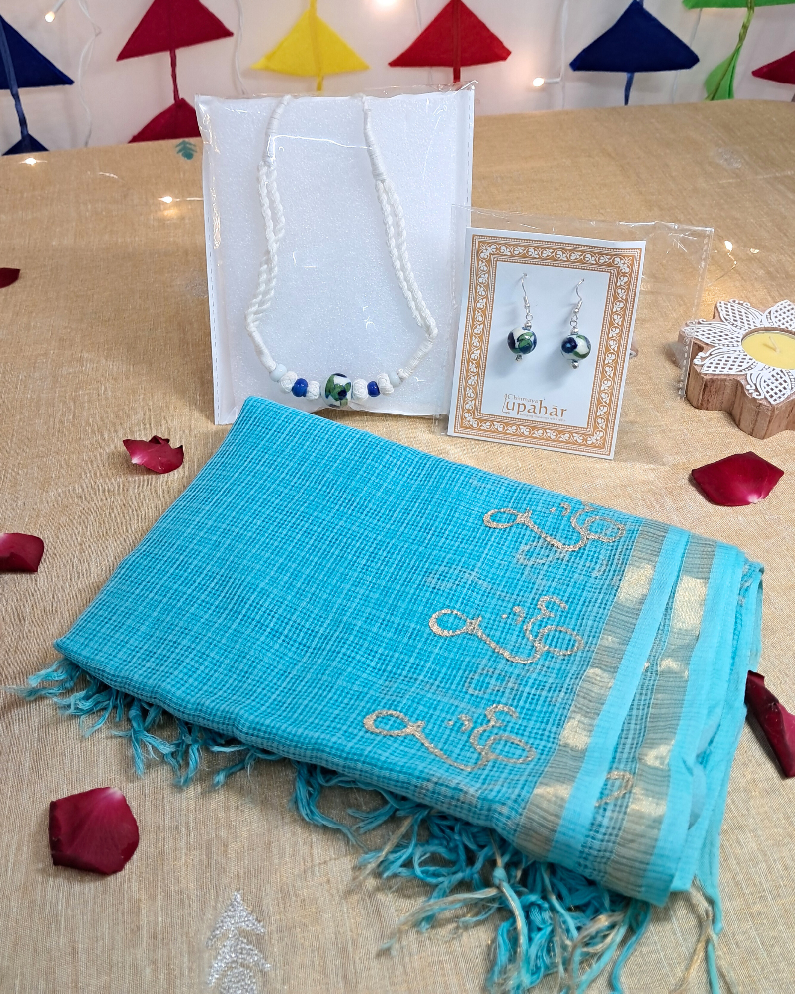 Shringar Gift Box – Kota Dupatta, Handmade Blue Pottery Necklace & Earrings