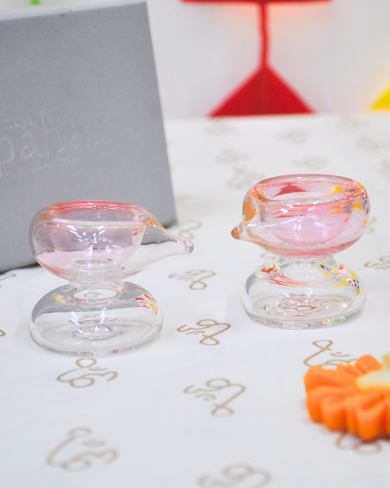 Pink Glass Diya – Handblown Festive Lamps (Set of 2)