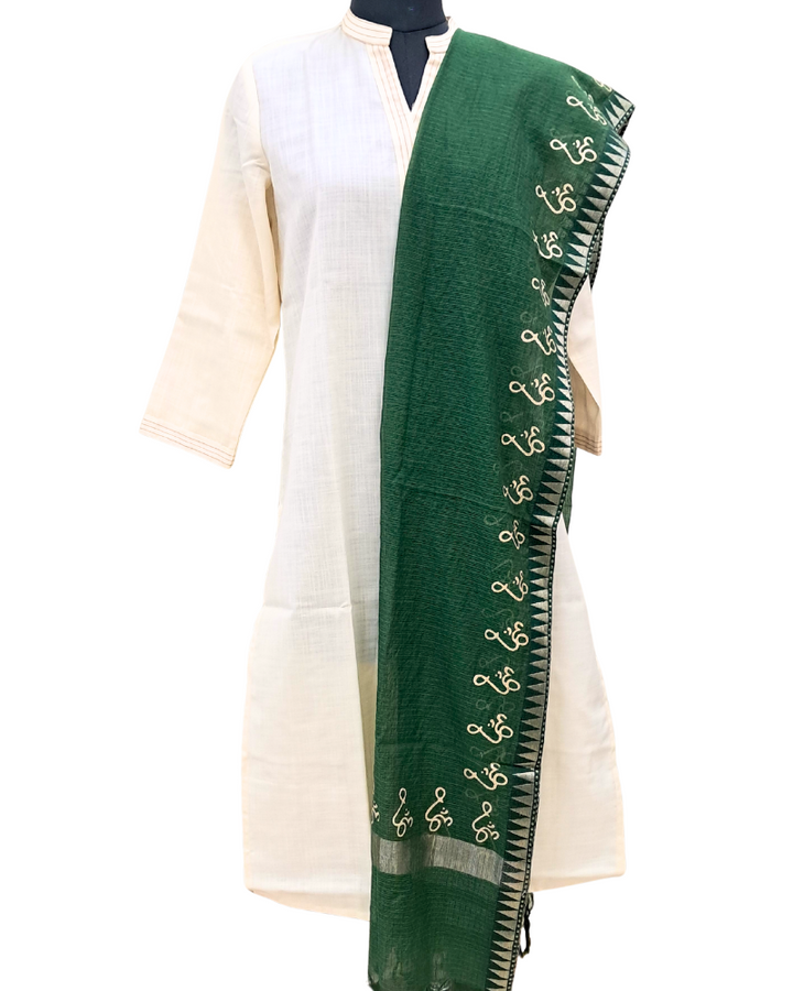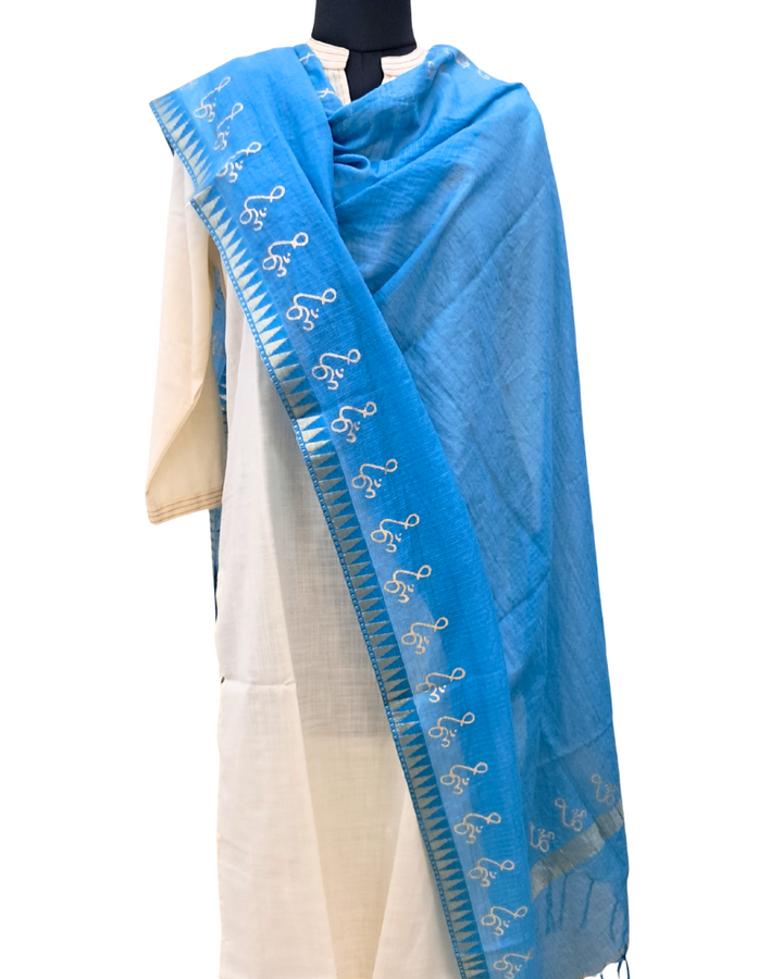 Dupatta: Kota Plain with Gold Border and Om Print