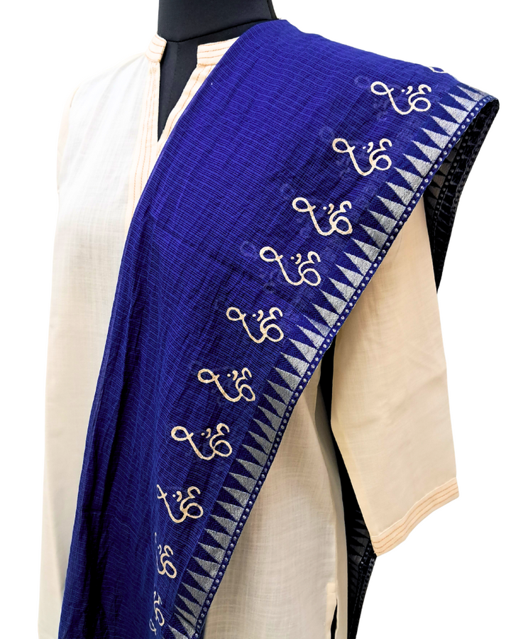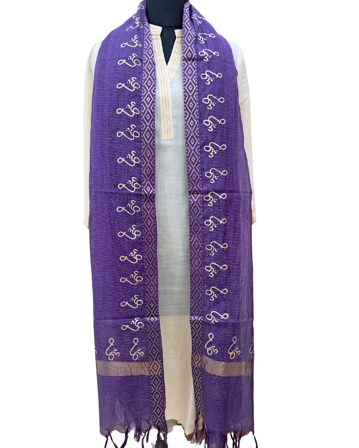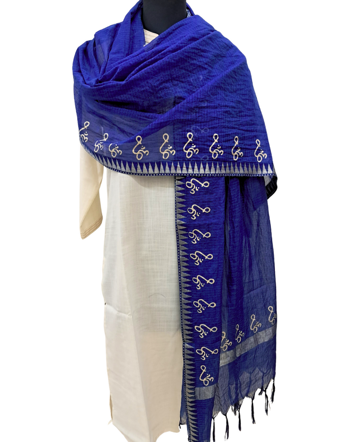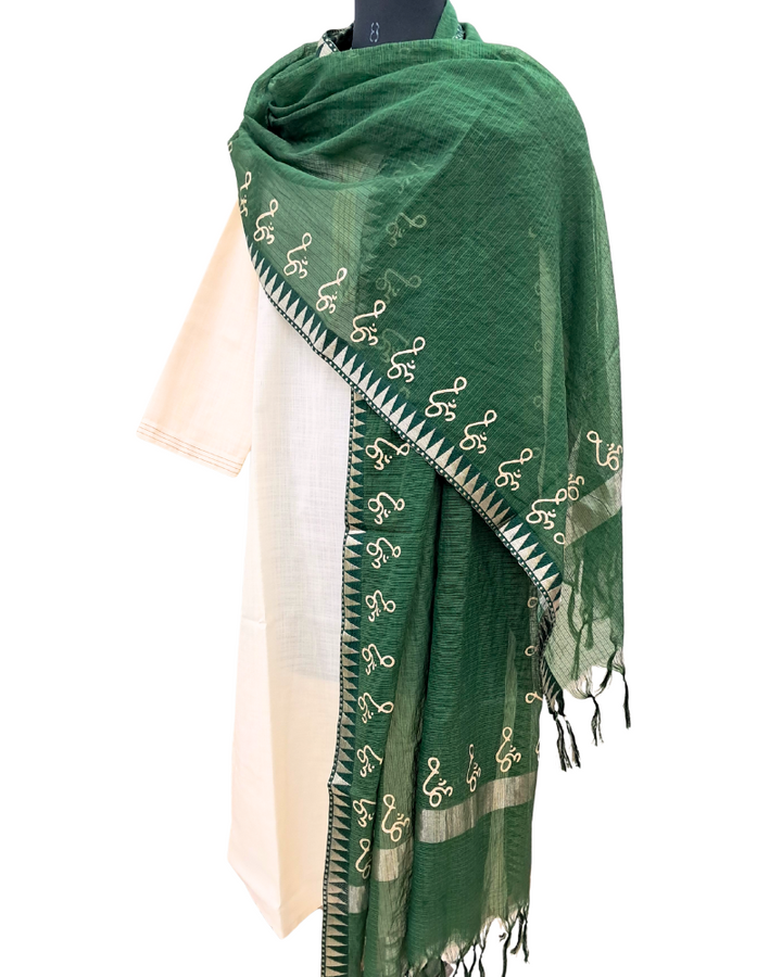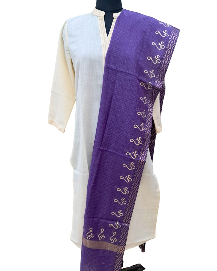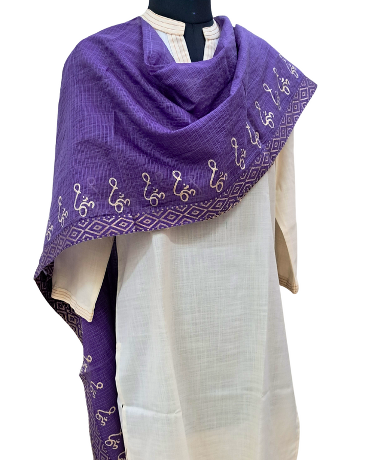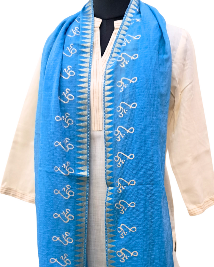 Available in elegant solid colours, this dupatta features a subtle zari border for a touch of festive shimmer and is adorned with a signature gold Om hand block print—adding spiritual depth to its timeless design. Perfect to wear with both printed and plain kurtas, this piece effortlessly blends tradition, comfort, and meaning.