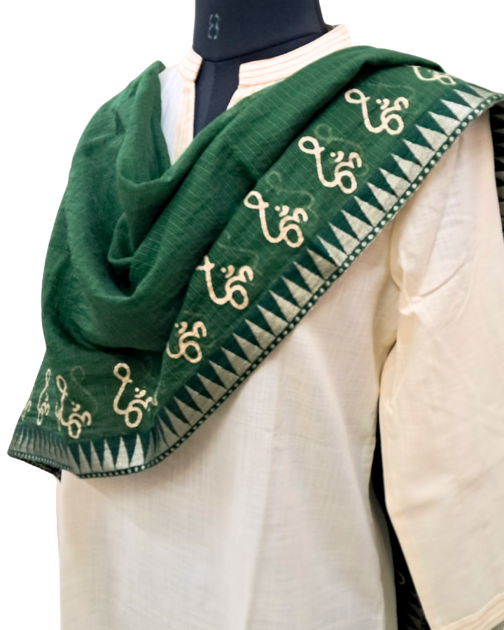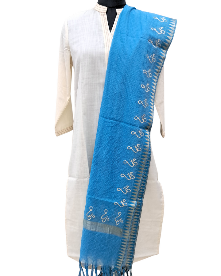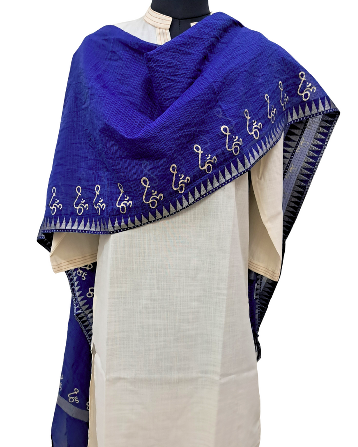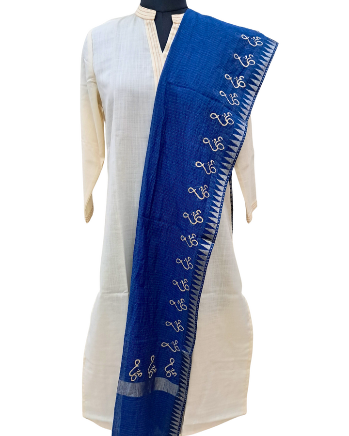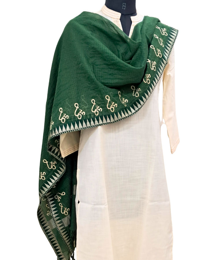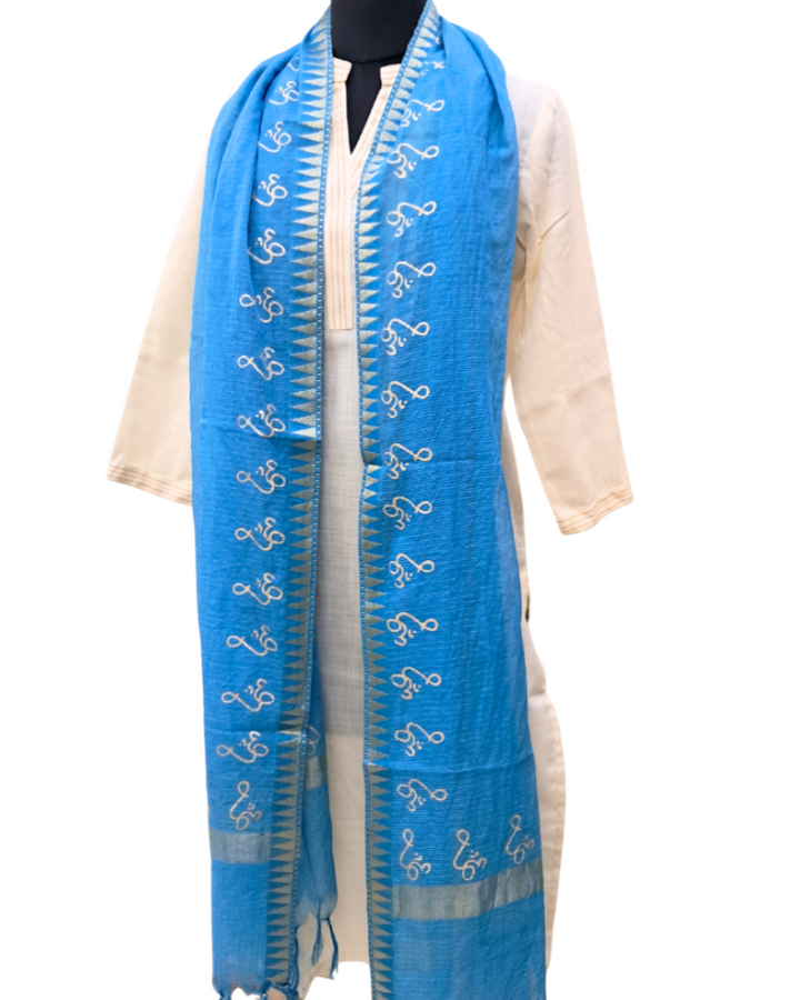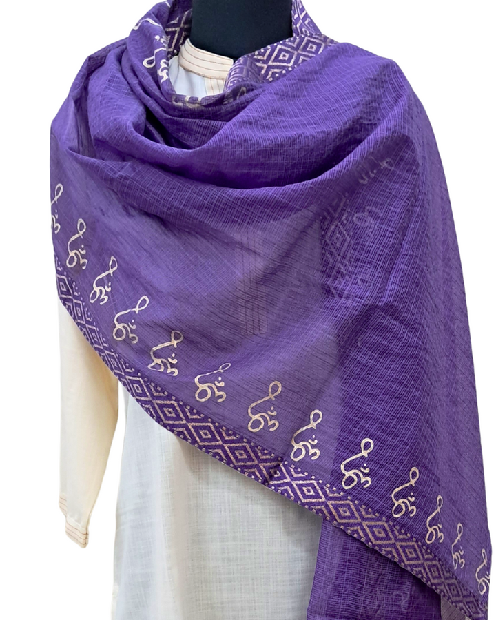 Available in elegant solid colours, this dupatta features a subtle zari border for a touch of festive shimmer and is adorned with a signature gold Om hand block print—adding spiritual depth to its timeless design. Perfect to wear with both printed and plain kurtas, this piece effortlessly blends tradition, comfort, and meaning.