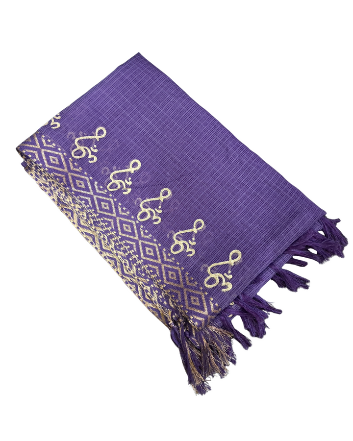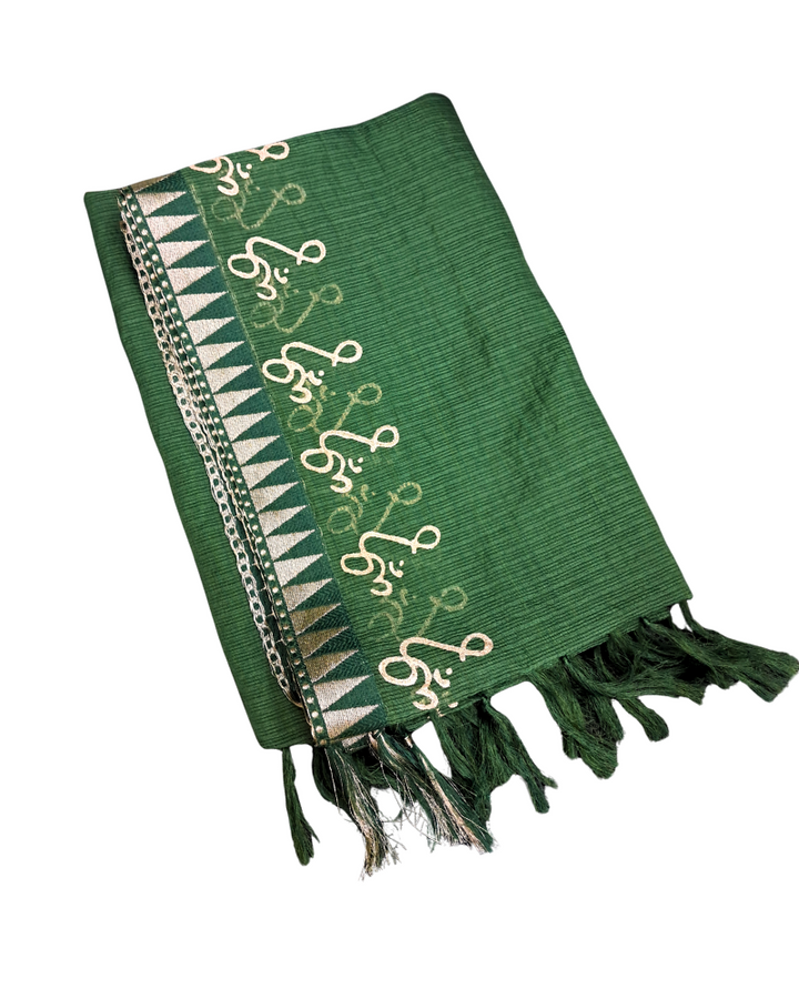 Subtle Elegance: Zari edging and gold Om motifs add understated charm.