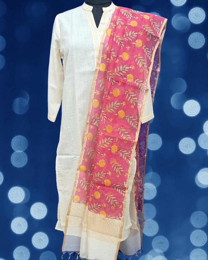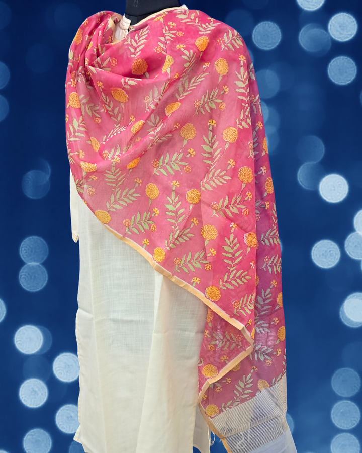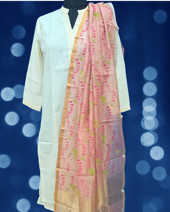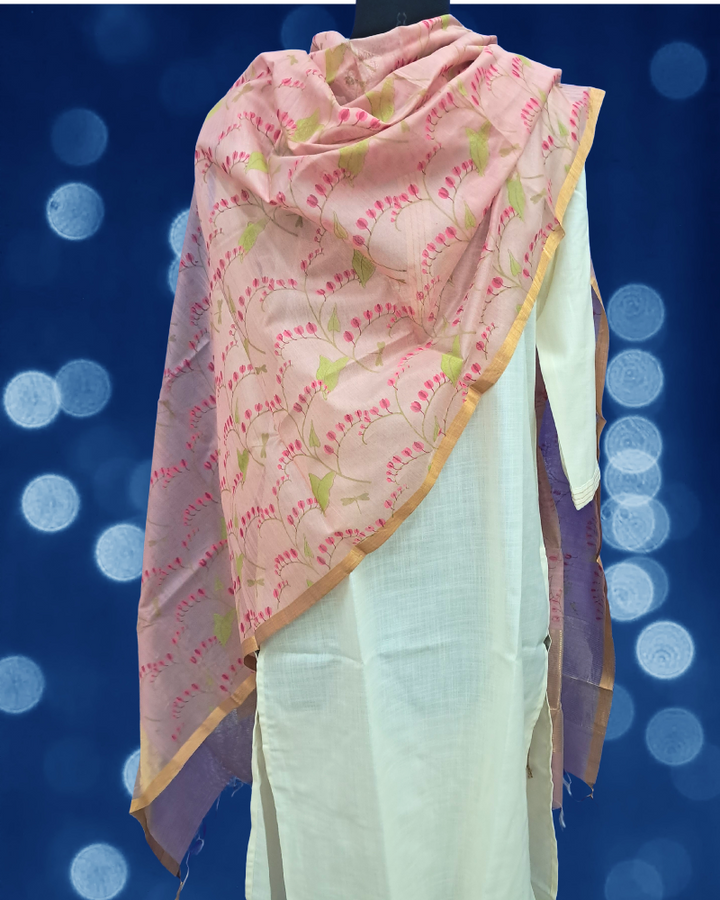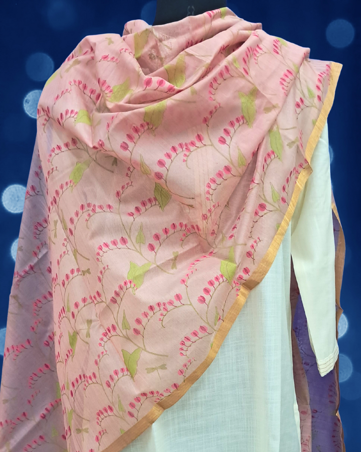 Handwoven Chanderi Dupatta: Phool-Pakshi Collection in Colour