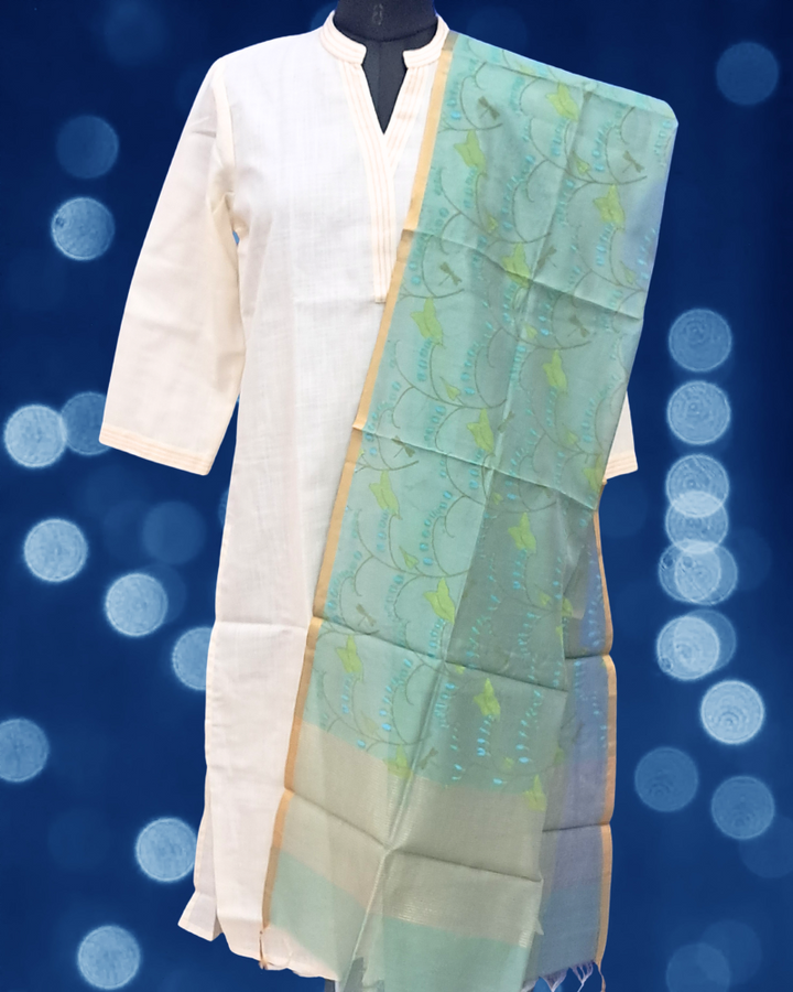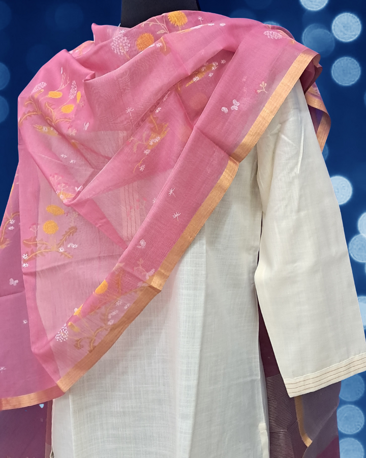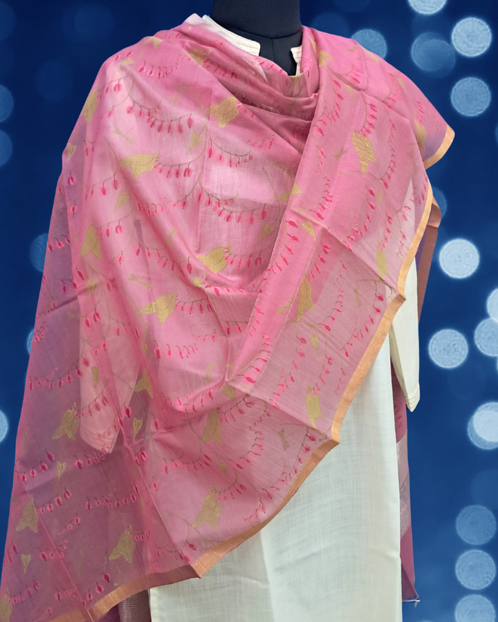 The lightweight fabric, gentle sheen, and zari-edged finish make these dupattas perfect companions for pujas, weddings, Diwali parties, or everyday festive dressing. Pair them effortlessly with kurtas, sarees, or lehengas to add a pop of colour and elegance. Inspired by the playfulness of nature and the stories of Indian folklore, these dupattas are timeless keepsakes that celebrate the beauty of handloom craft.
