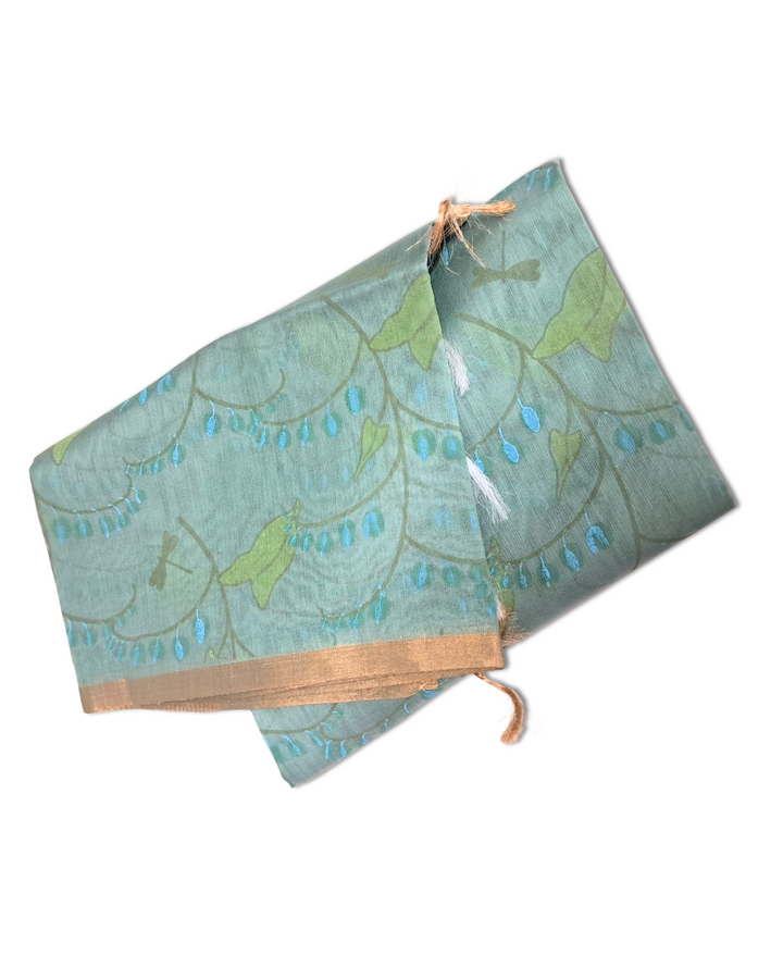 Neelvatī – Aqua green base with floral creepers and dragonflies