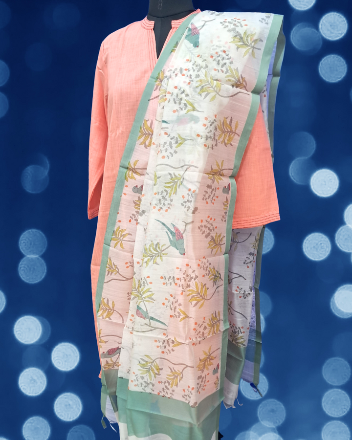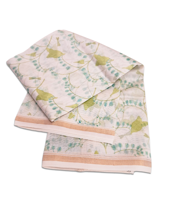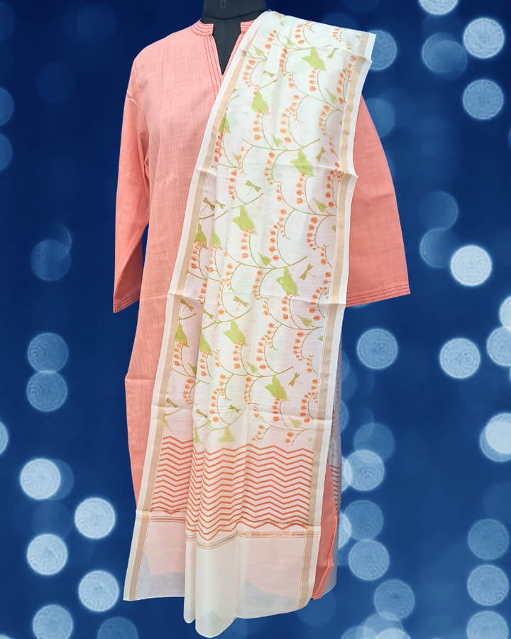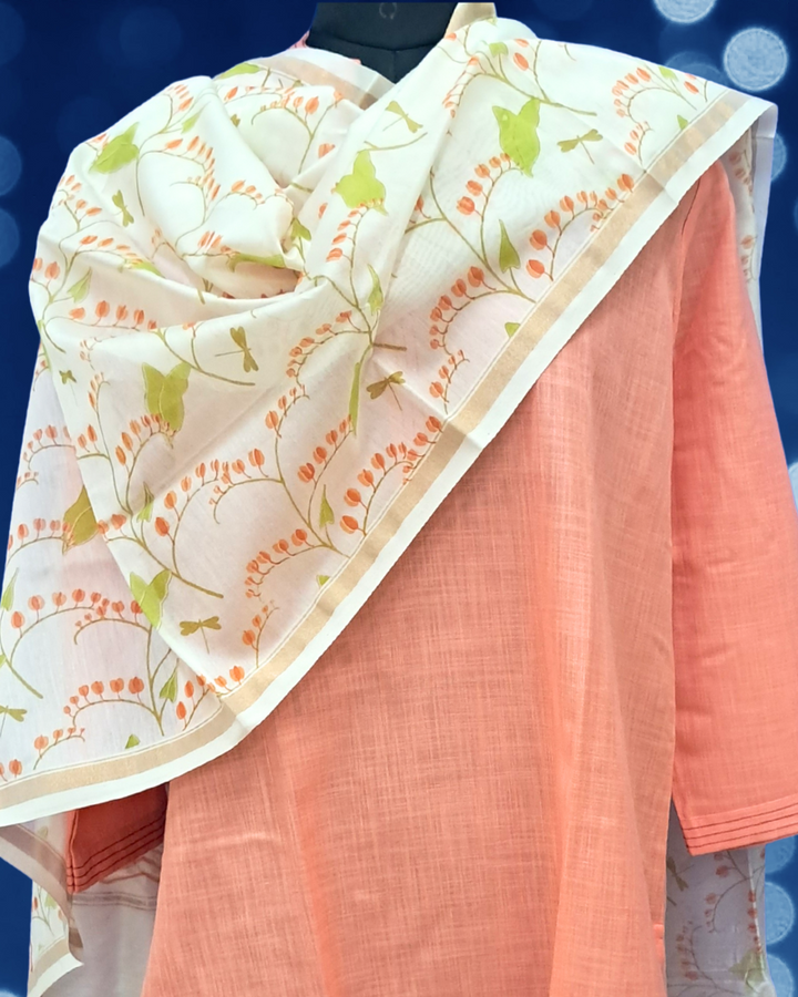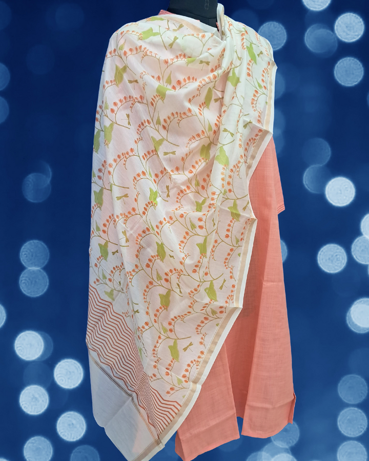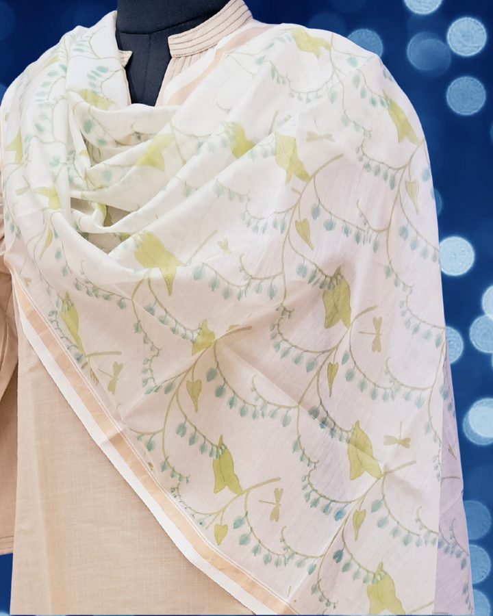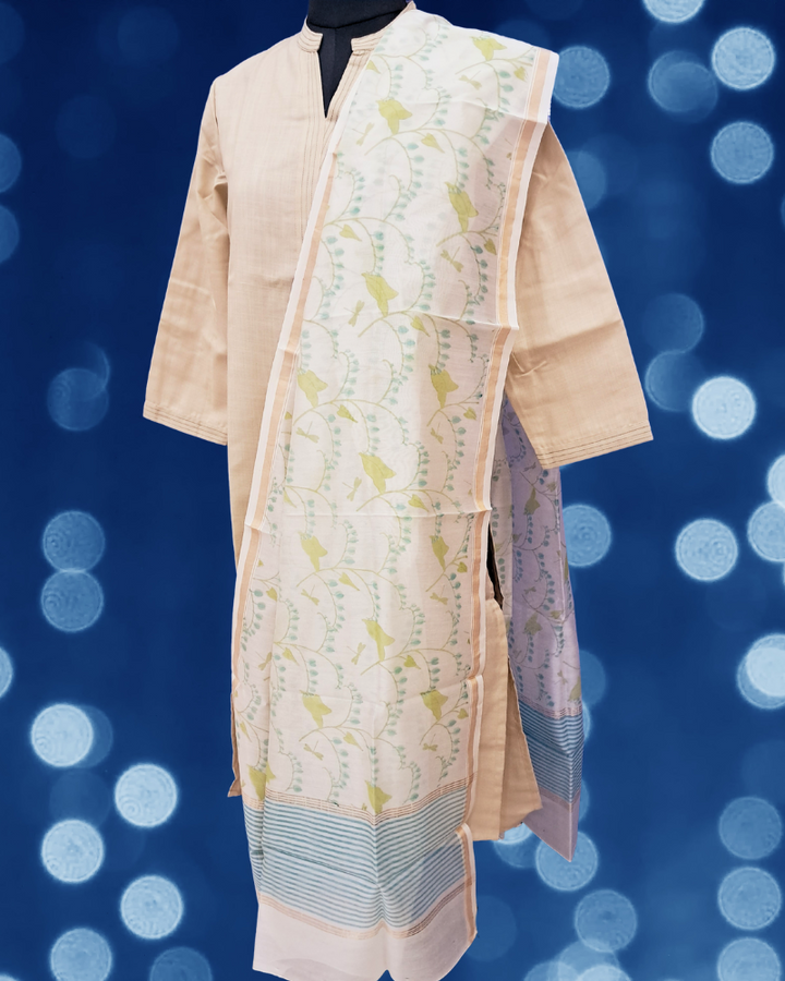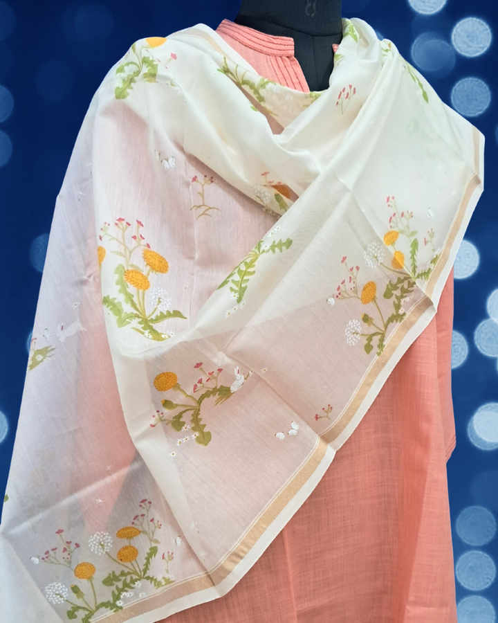 Handwoven Chanderi Dupatta: Phool-Pakshi Collection in Off-White
