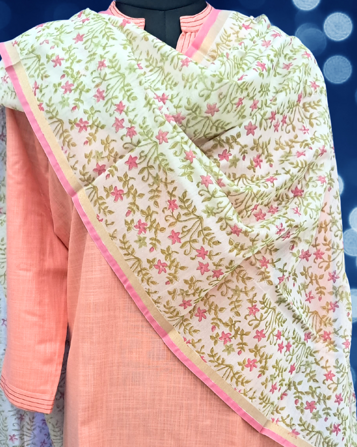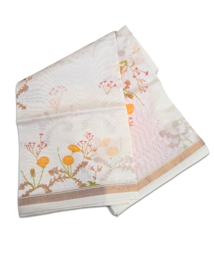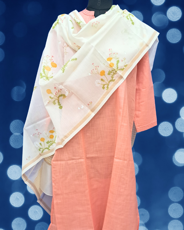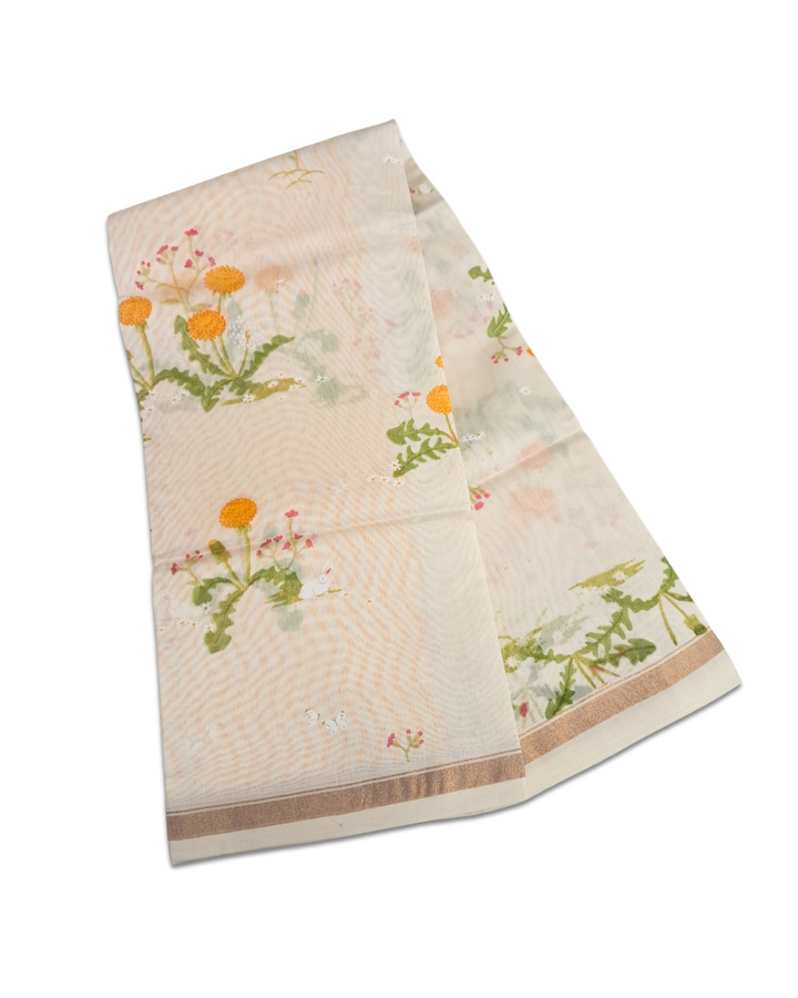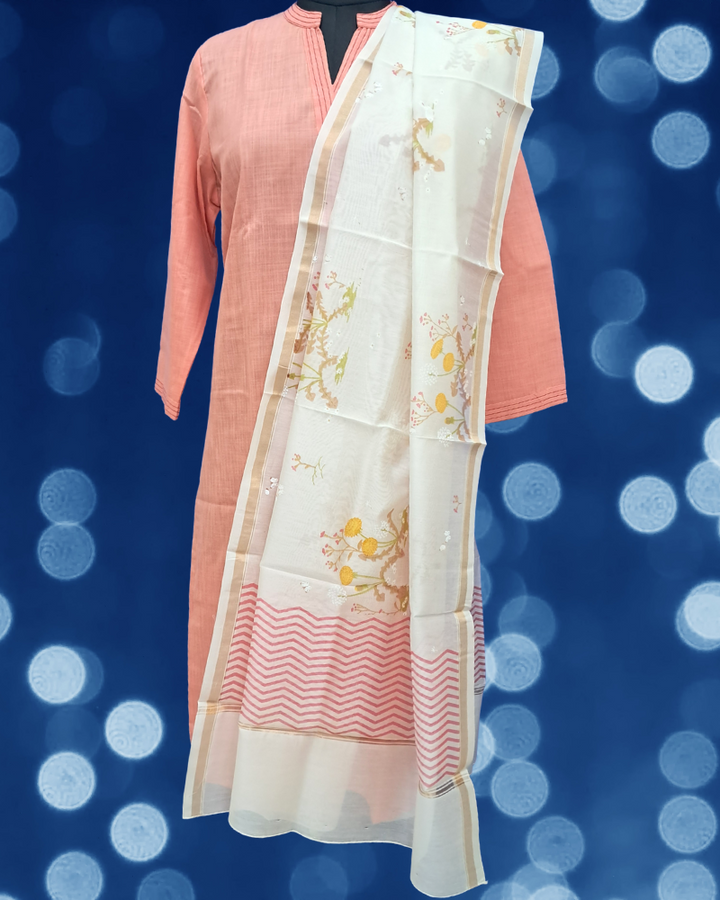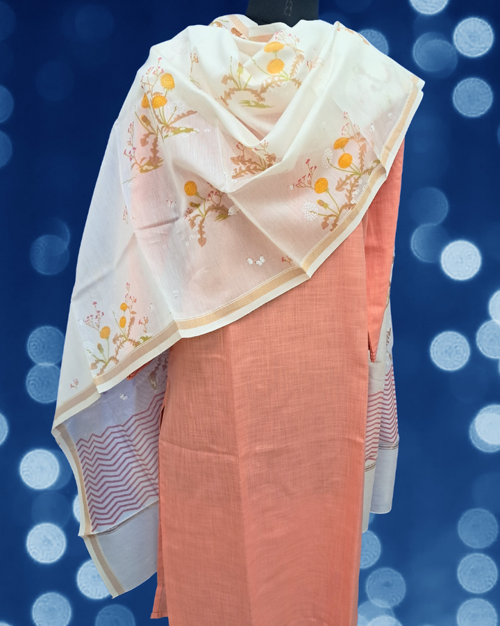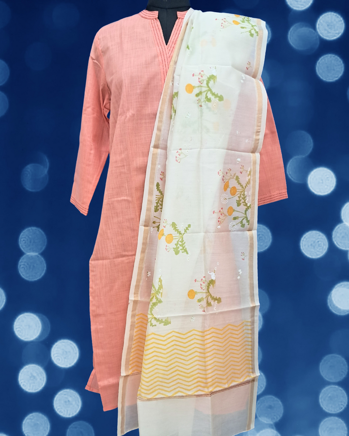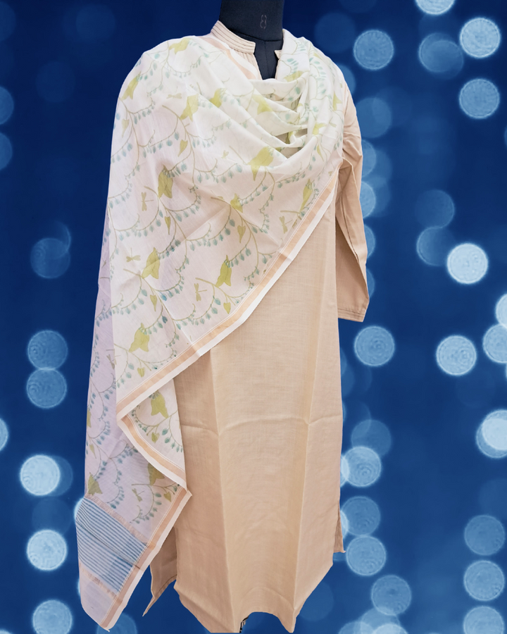 Handwoven Chanderi Dupatta: Phool-Pakshi Collection in Off-White