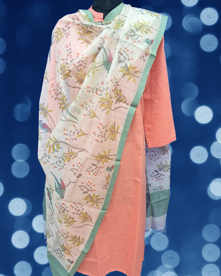 Each piece is adorned with hand screen prints, reinterpreting the playfulness of nature and the mystique of Indian folklore into wearable art. From delicate vines to graceful parrots, from lily blooms to berry creepers, every motif embodies a story older than time, keeping alive the essence of heritage while appealing to the tastes of the modern generation.