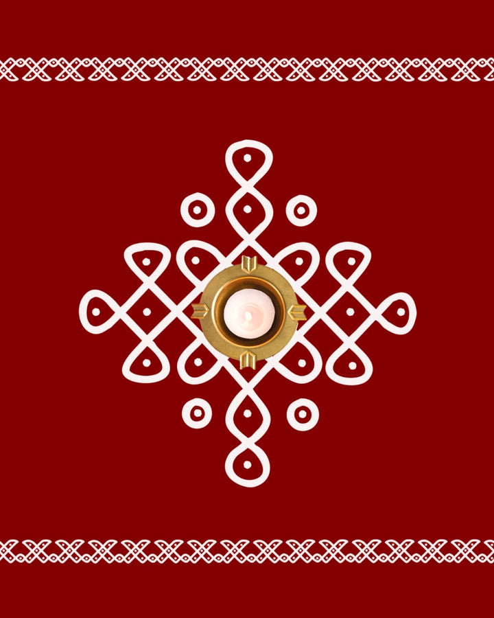 Inspired by the ancient South Indian art of Kolam, these Floating Kolam Brass Tealights are a tribute to a tradition passed down through generations of women over 5,000 years. Traditionally drawn at the thresholds of homes to invite prosperity and harmony, Kolam patterns are reimagined here as elegant, handcrafted brass tealights.
