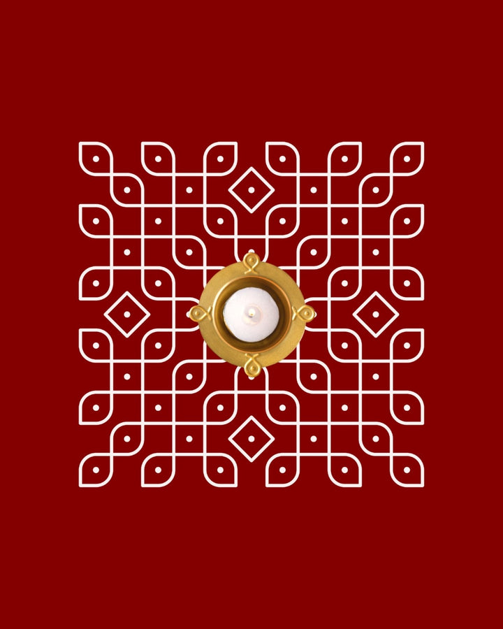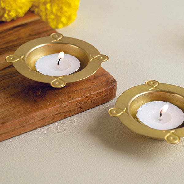 Handcrafted from pure brass, this set of two tealights captures the delicate swirls and curves of Rangoli in a graceful, functional form. Use them as floating diyas, place them in clusters around your home, or repurpose them as kumkum holders for rituals and celebrations.