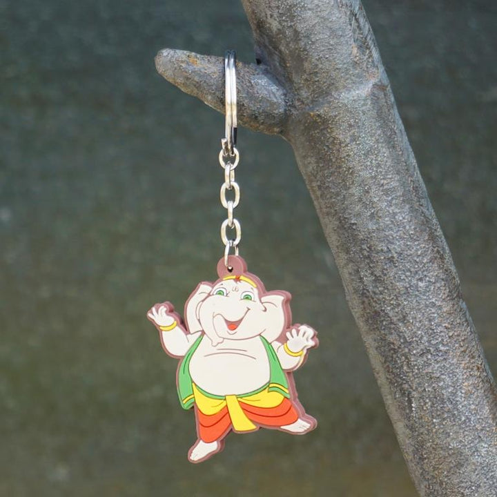Celebrate the remover of obstacles with this joyful Little Ganesha keychain. Crafted in moulded rubber, this keychain captures Ganesha’s lovable form in a vibrant, childlike avatar. Lightweight and fun, it's a great way to carry blessings with you every day.