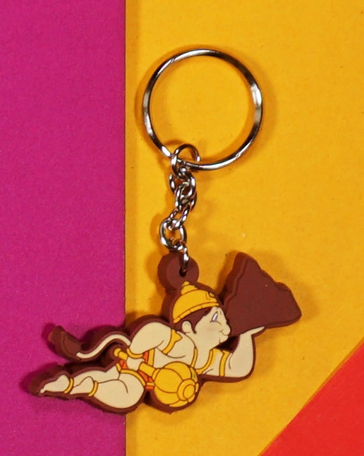 Channel the courage and devotion of Hanuman with this dynamic keychain featuring Little Hanuman flying with the Sanjeevani mountain. Made of sturdy moulded rubber, this piece is perfect for those who admire strength, loyalty, and service.