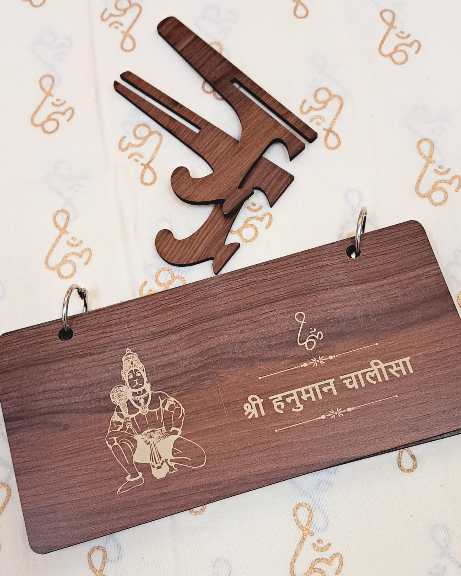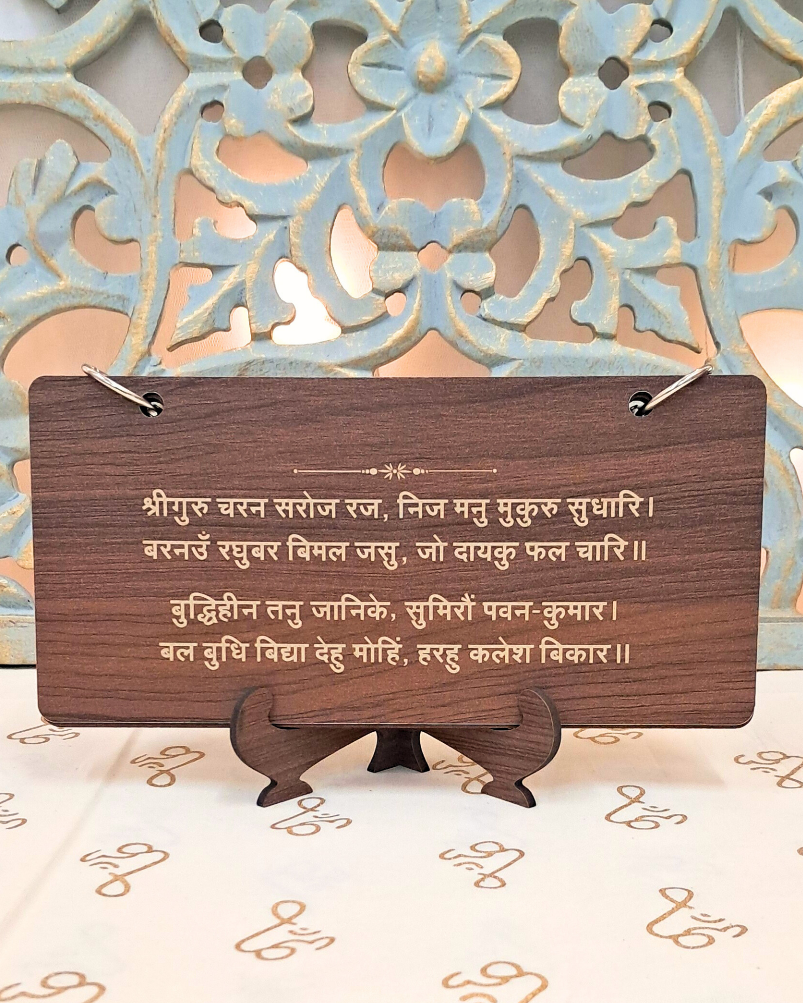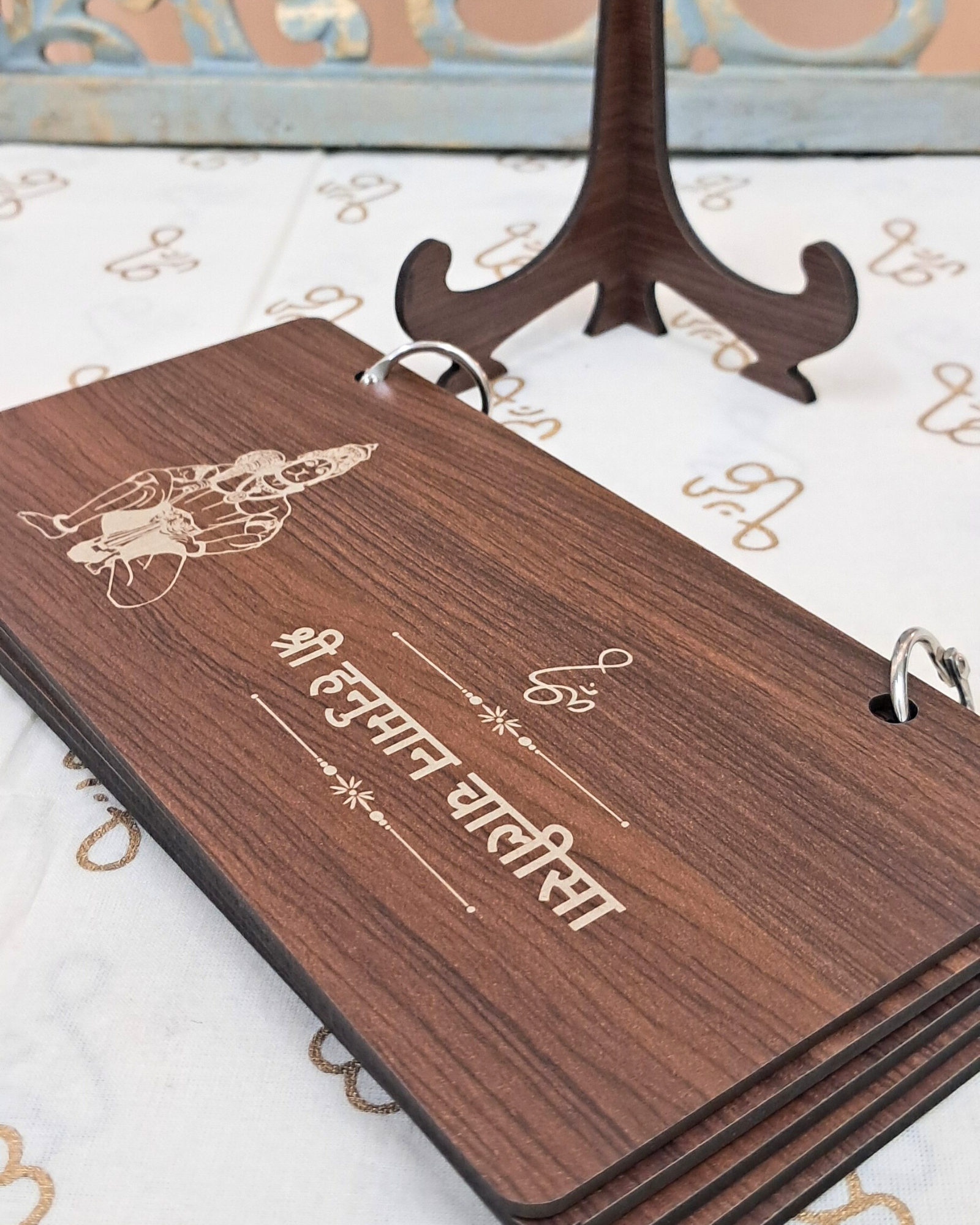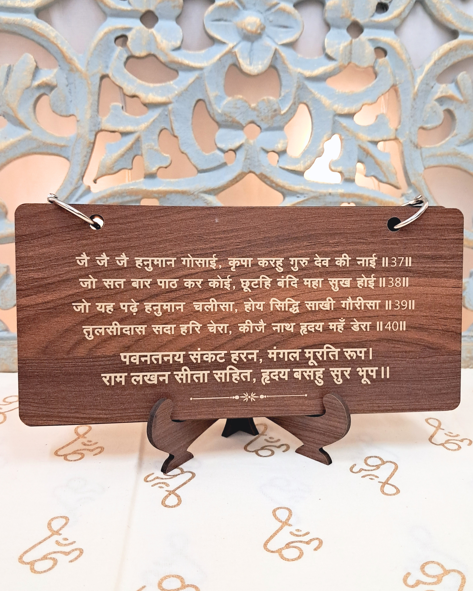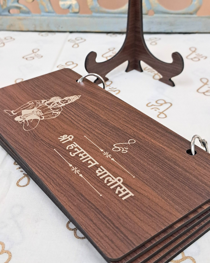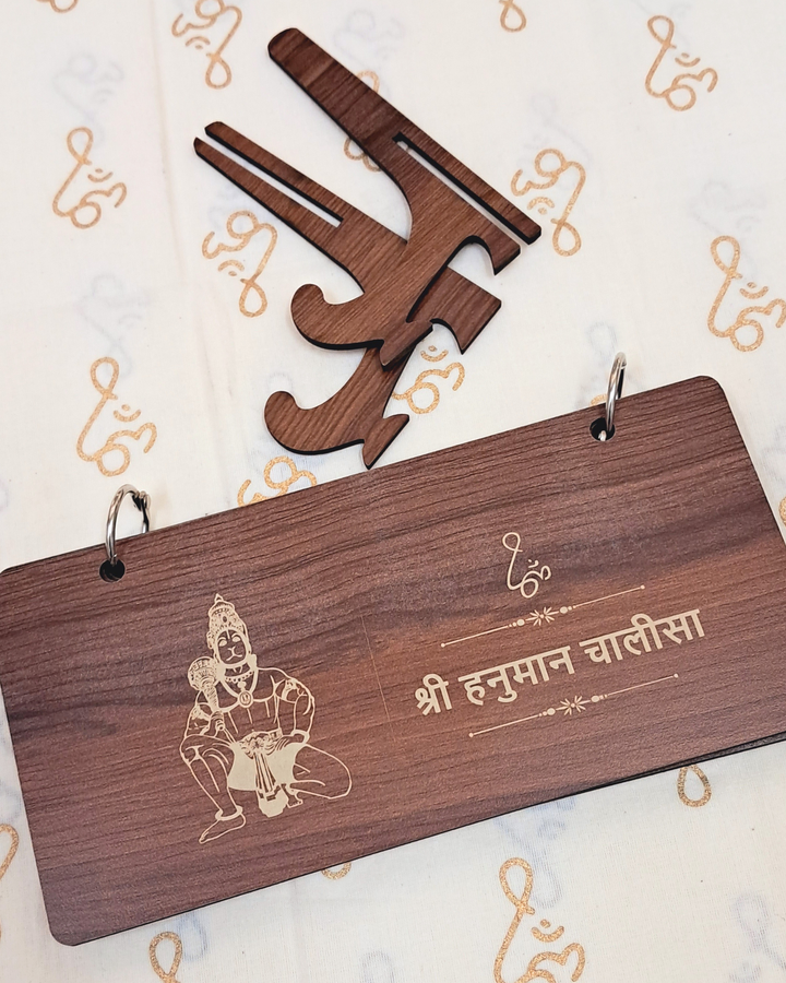 Features the complete Shri Hanuman Chalisa across 5 engraved wooden sheets.