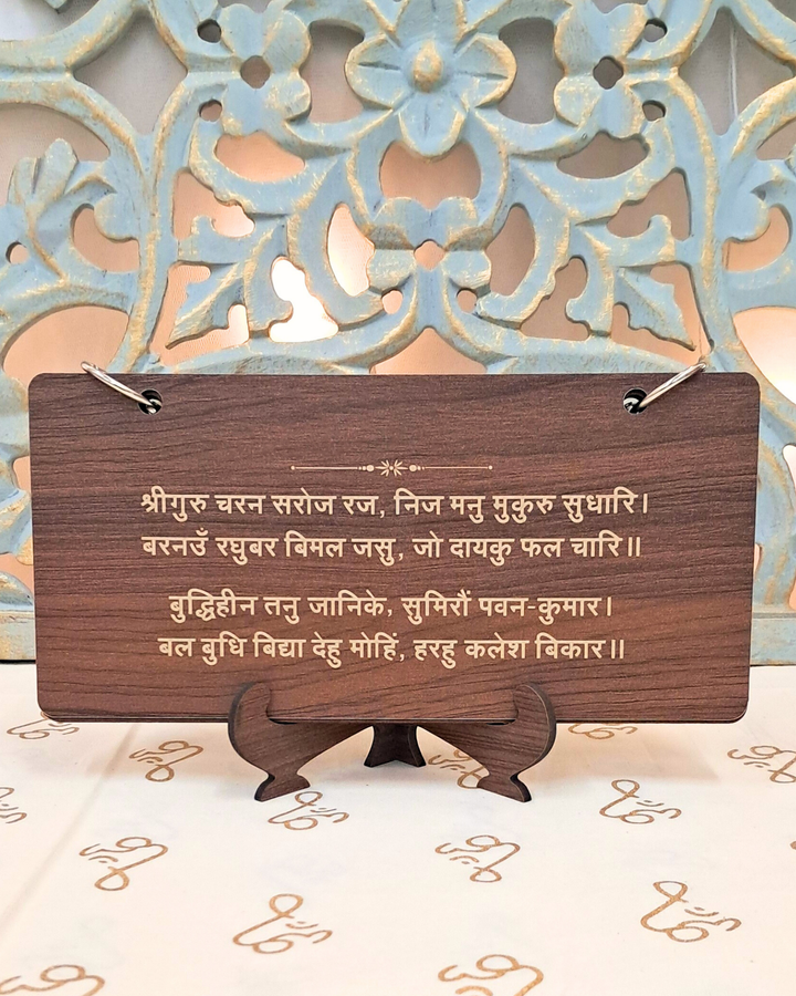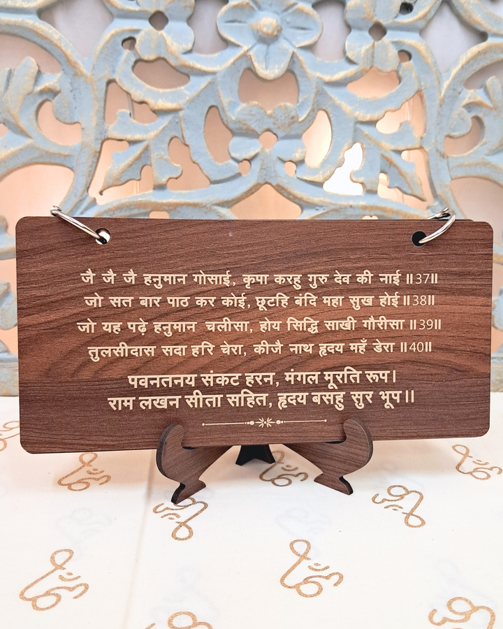 Shri Hanuman Chalisa – Engraved Wooden Tabletop Set