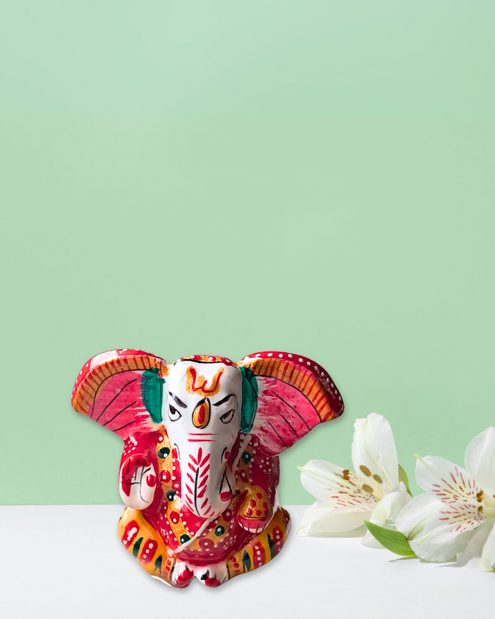This adorable Ganpati murti is more than just a decorative piece—it's a meaningful addition to your home altar, work desk, or puja space. Whether you're looking for festive décor, a thoughtful gift, or a daily reminder of divine support and protection, this compact idol is sure to bring warmth and blessings wherever it’s placed.