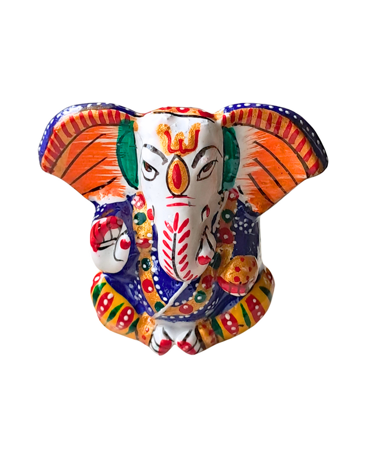 Celebrate Ganesh Chaturthi by bringing home a vibrant expression of divine joy. This beautifully handcrafted Ganesha idol is made of sturdy metal and finished with vivid, hand-applied enamel work that highlights every detail—from the crown to the mouse at His feet.