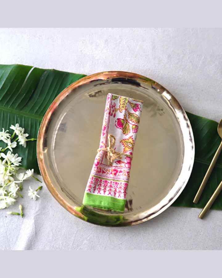 No two platters are alike—each bears the beautiful imperfections of its handmade nature, from soft undulations to patina variations. Whether placed on a festive table or used for ritual offerings, the Bhog Thali brings together health, heritage, and heartfelt craftsmanship.