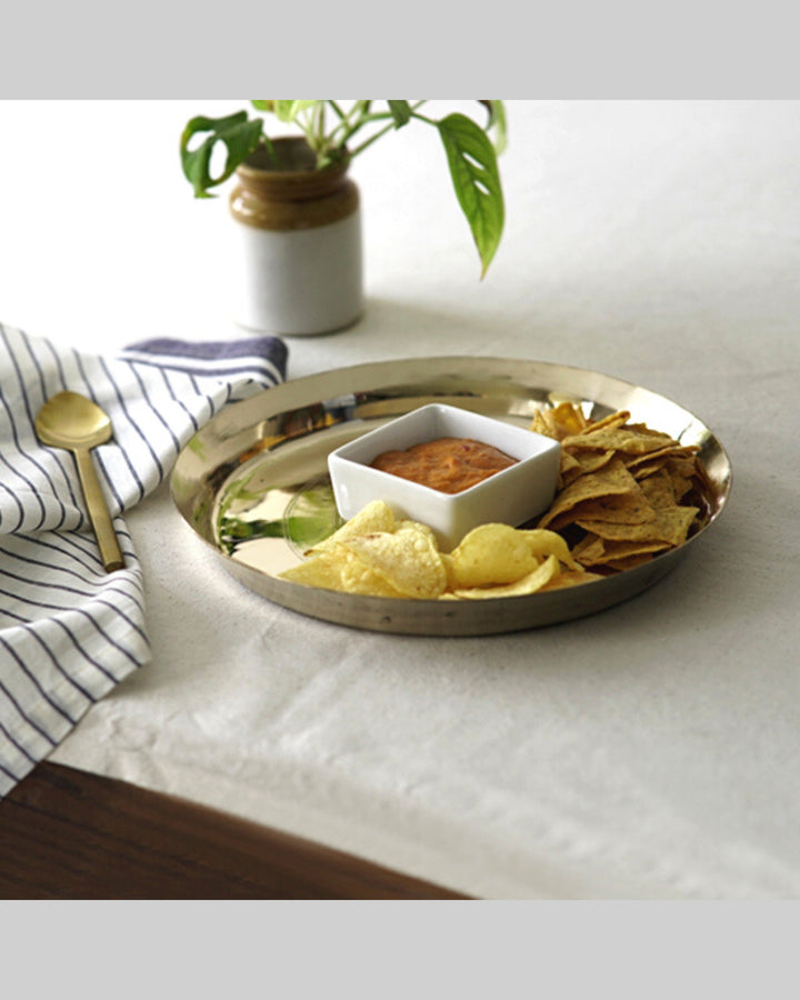 This heritage-inspired plate blends traditional design with contemporary relevance, making it perfect for everyday meals, puja rituals, or festive dining. Each piece carries the uniqueness of handcrafted work, with slight variations in shape and finish that reflect its artisanal origins.