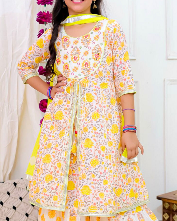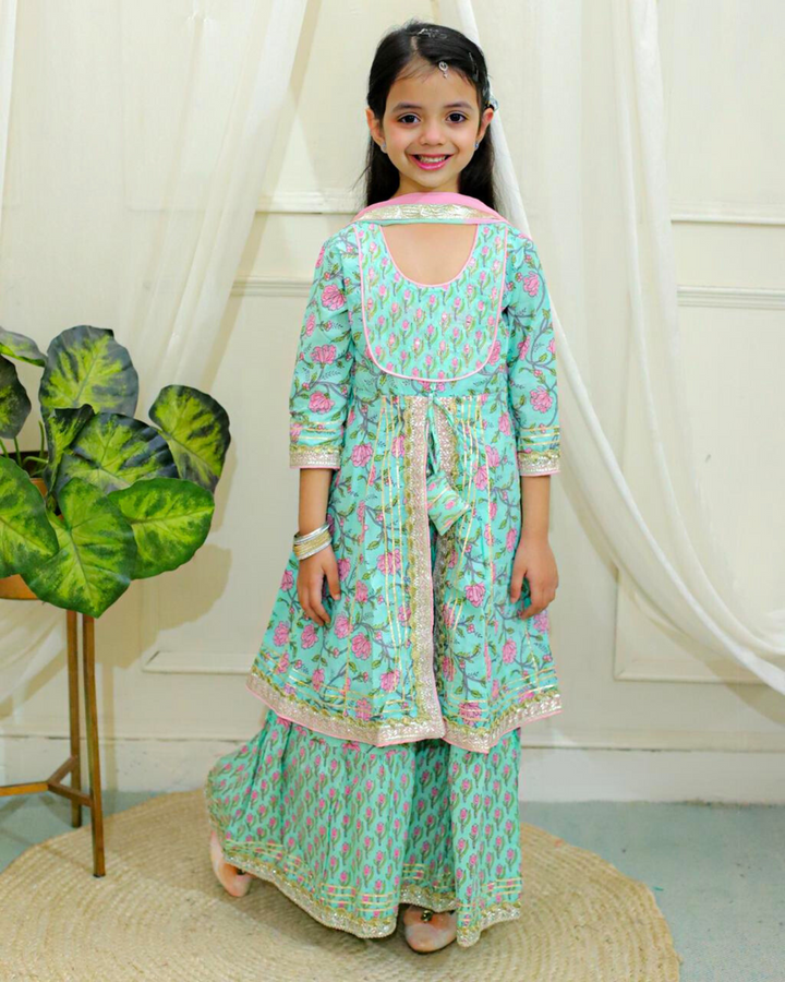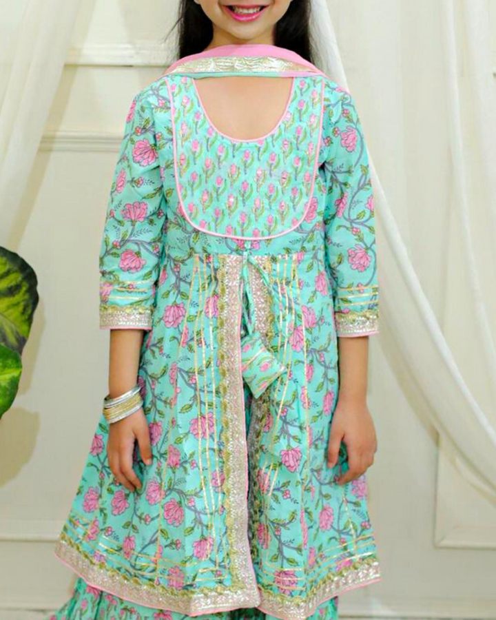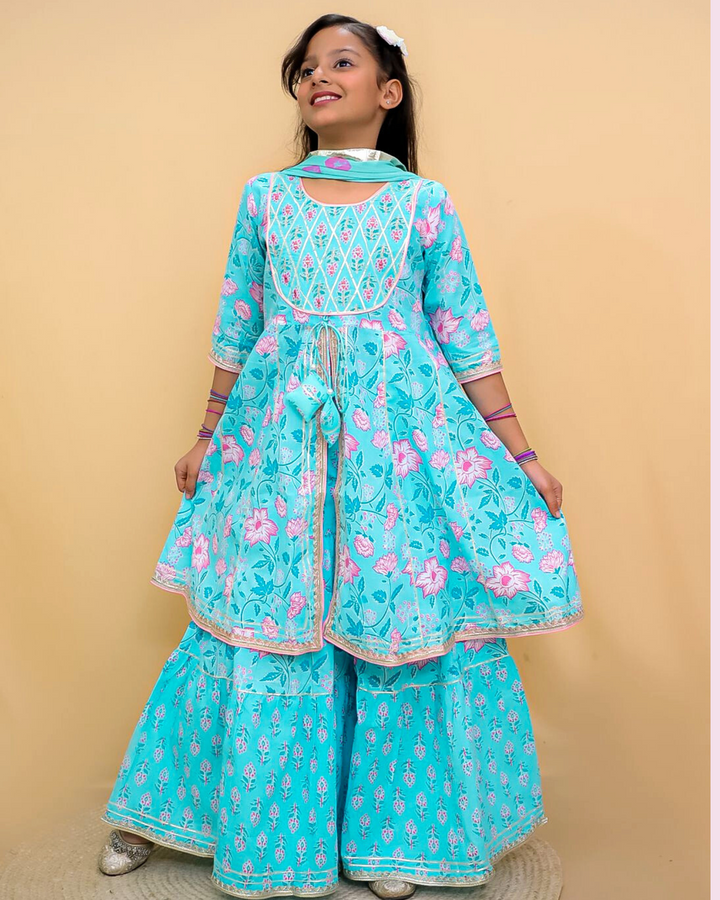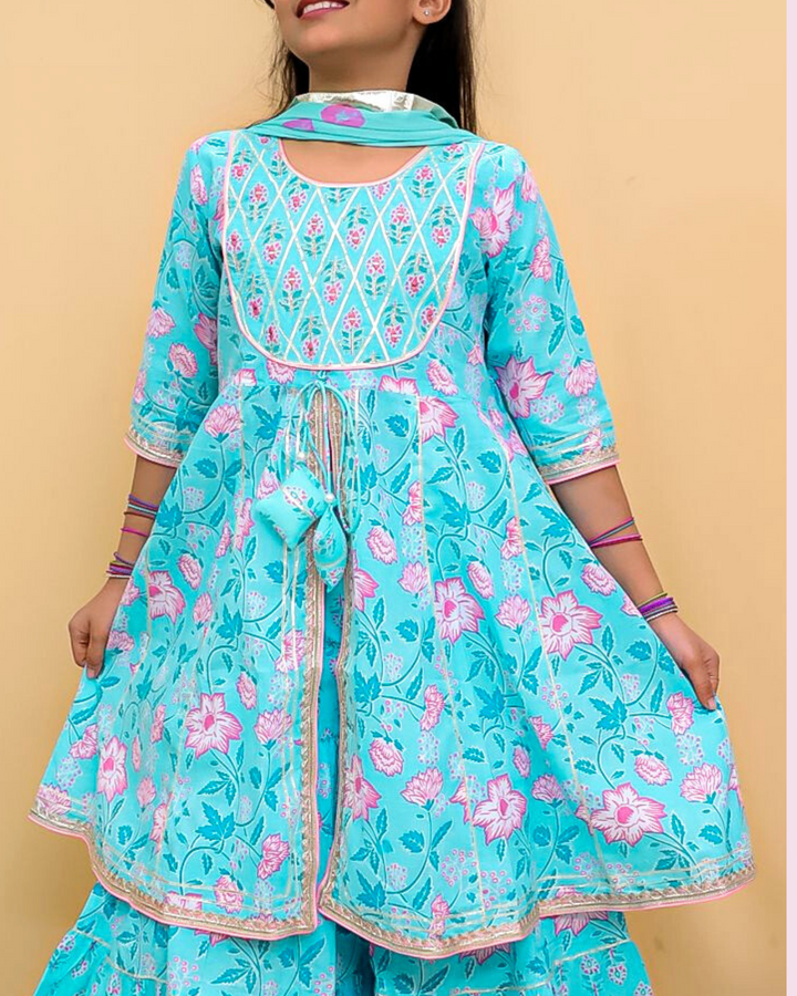 Kurta Set: For Girls, Long Angrakha - 3pc set