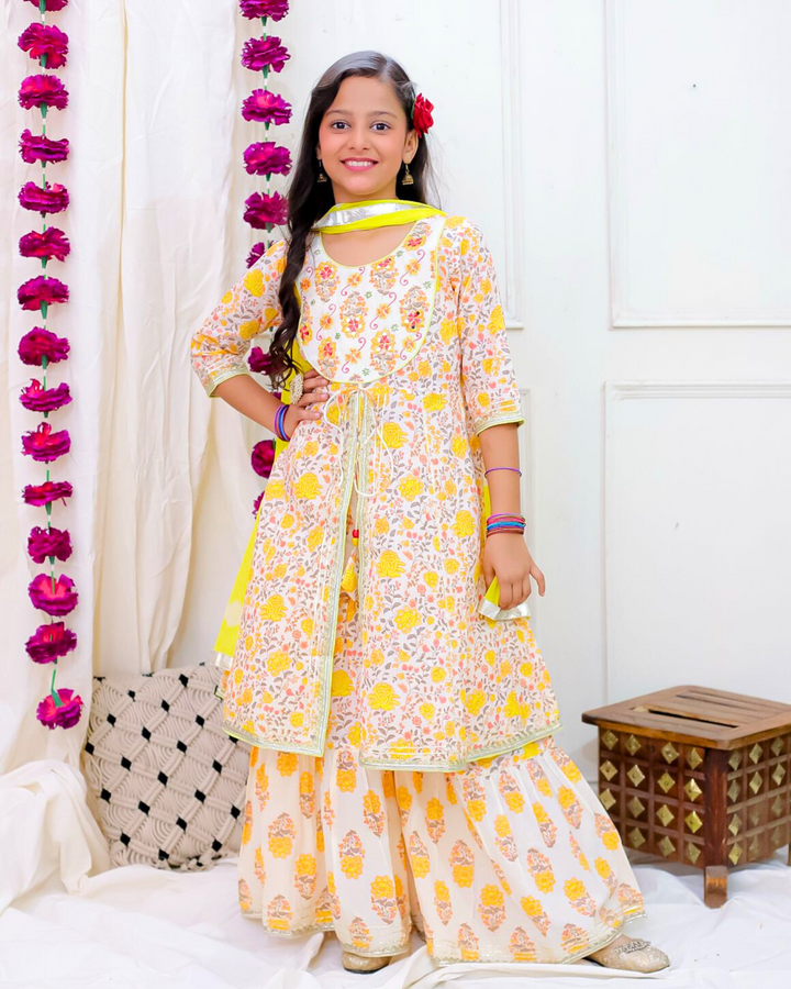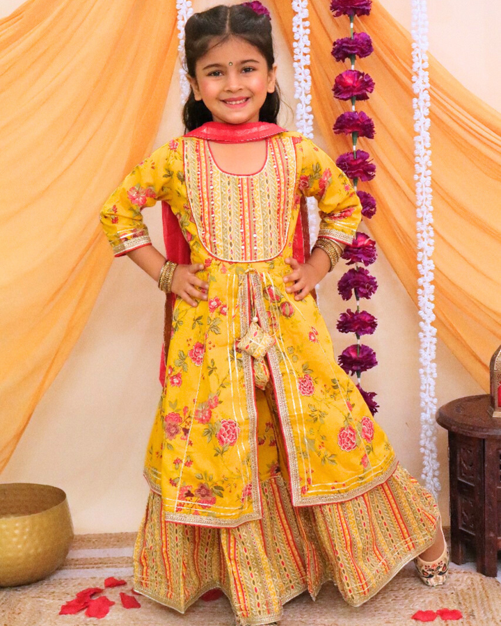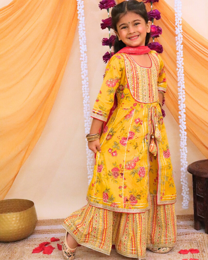 Dress your little princess in unmatched elegance with our exquisite collection of traditional ethnic wear for girls. Made from the softest pure cotton and detailed with enchanting prints and delicate embroidery, these vibrant lehenga and sharara sets are specially designed for festive occasions like Raksha Bandhan, weddings, family get-togethers, and cultural celebrations. Each outfit effortlessly combines comfort with sophistication, ensuring your girl looks charming, feels comfortable, and stands out beautifully during every celebration. With thoughtful detailing and graceful styling, these outfits guarantee adorable and memorable twinning moments with brothers and family, capturing unforgettable family moments.