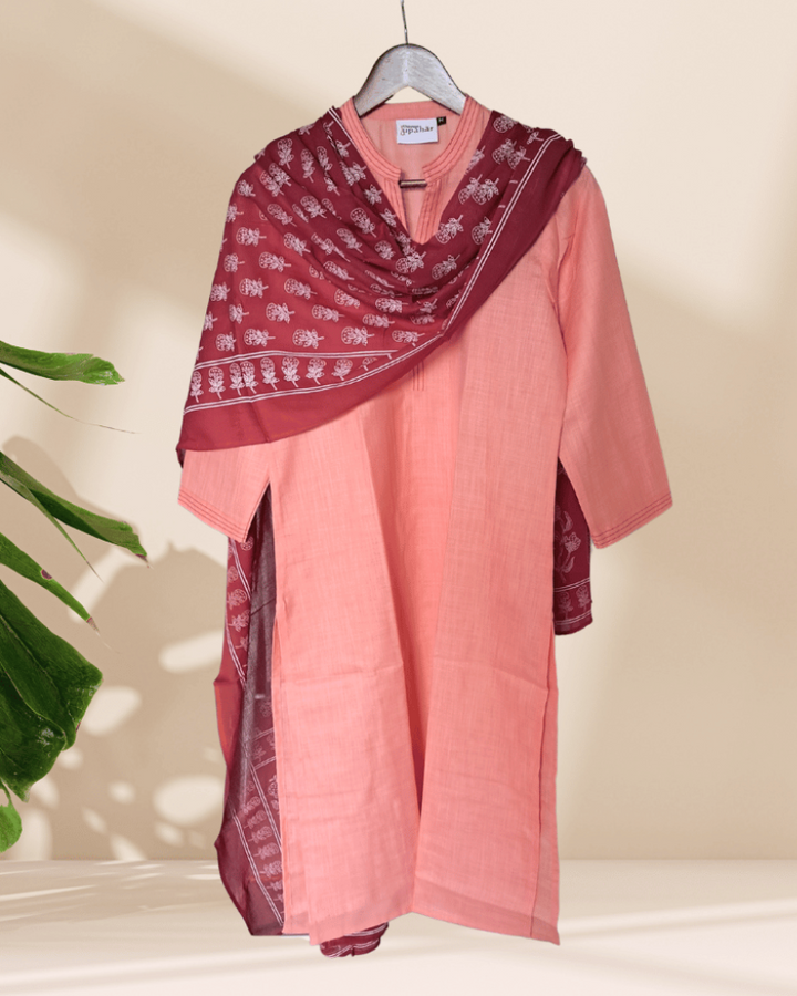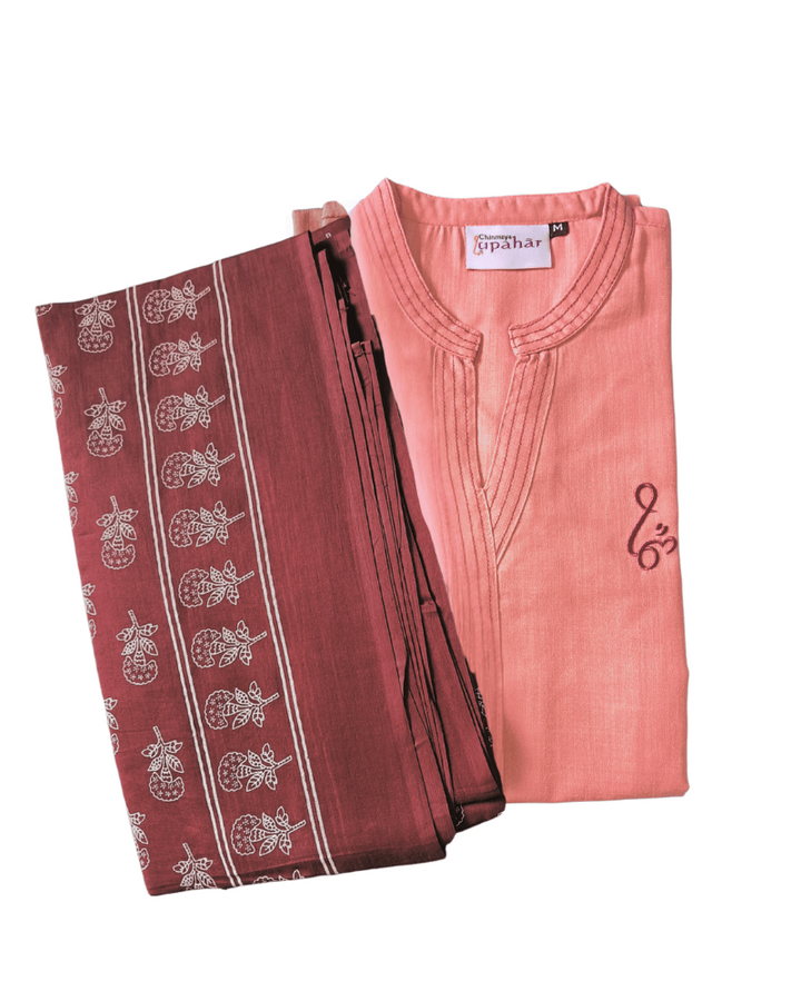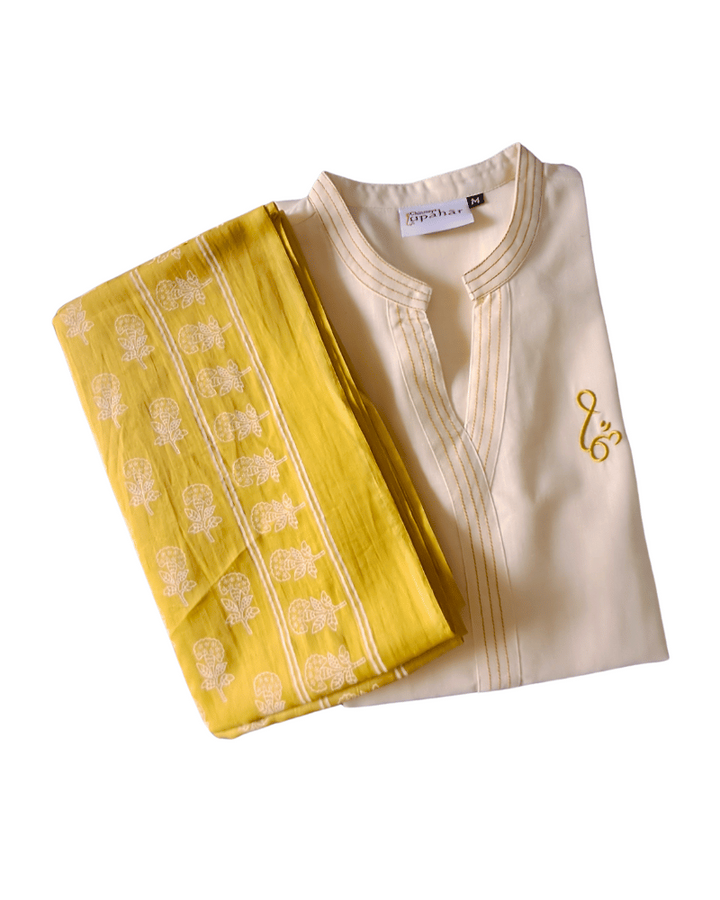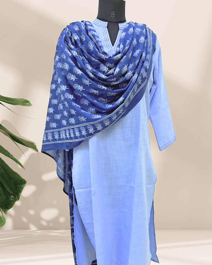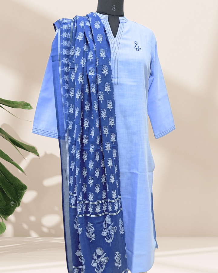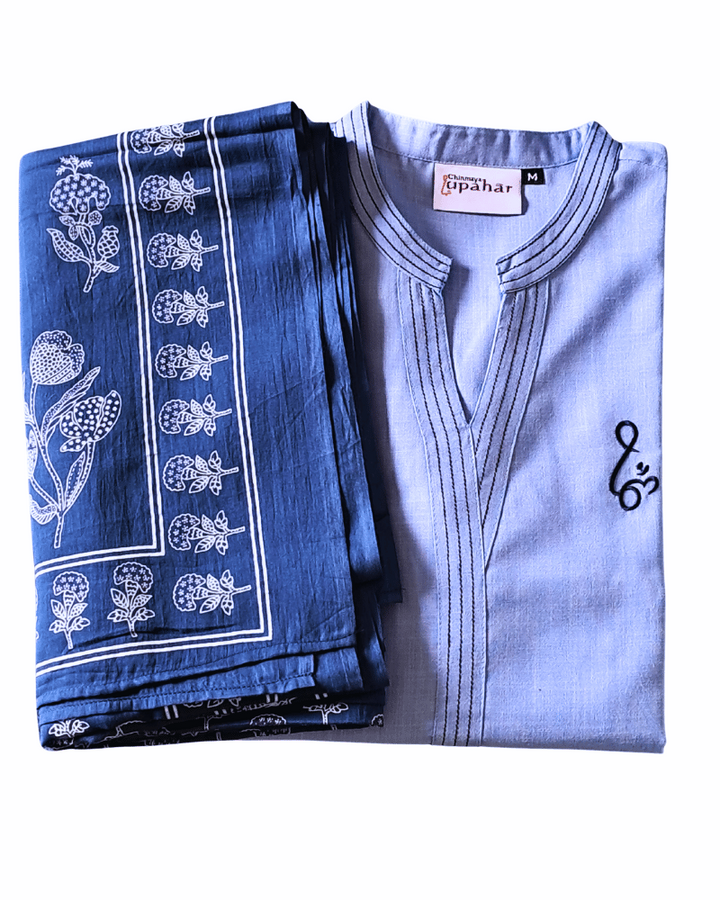 Discover timeless elegance with our women's long kurta and dupatta set – where comfort meets tradition. The kurta is made from breathable Matka Cotton, known for its slightly textured weave and natural sheen. It features subtle Om embroidery near the neckline, adding a sacred, spiritual touch.