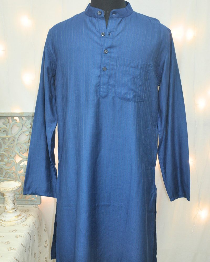 Designed with a Chinese collar, front placket with matching buttons, and side slits, this kurta ensures both comfort and timeless style.