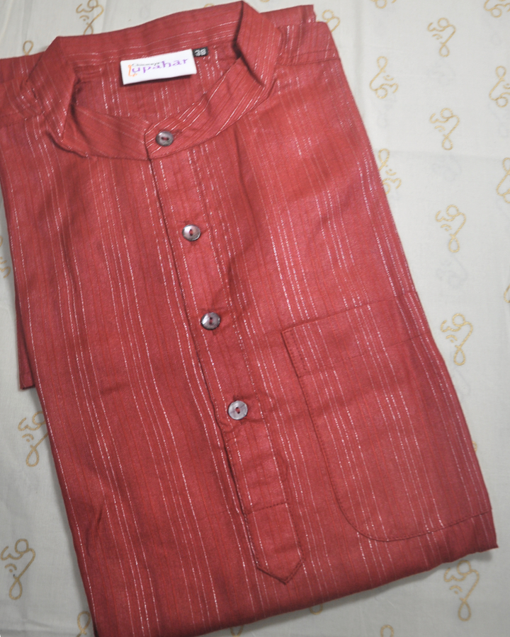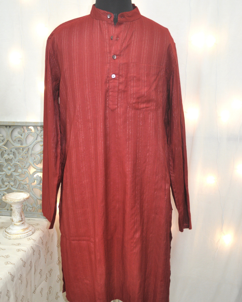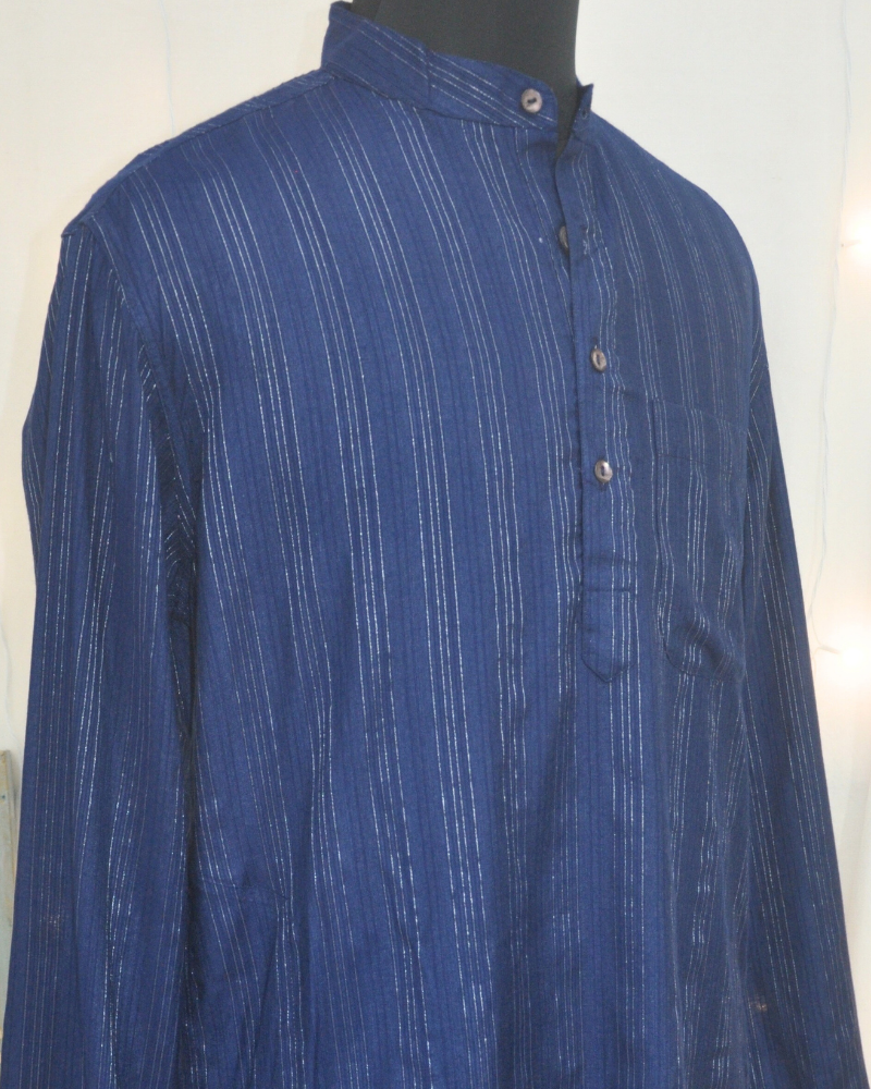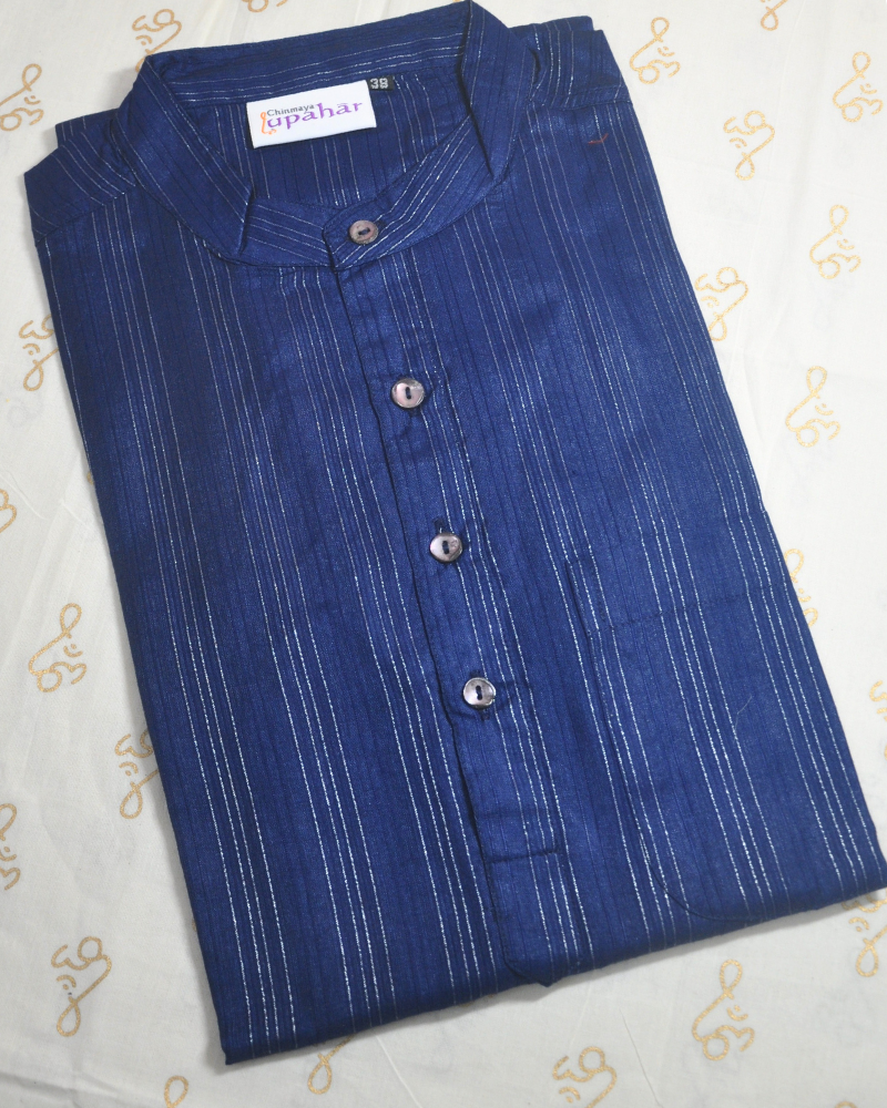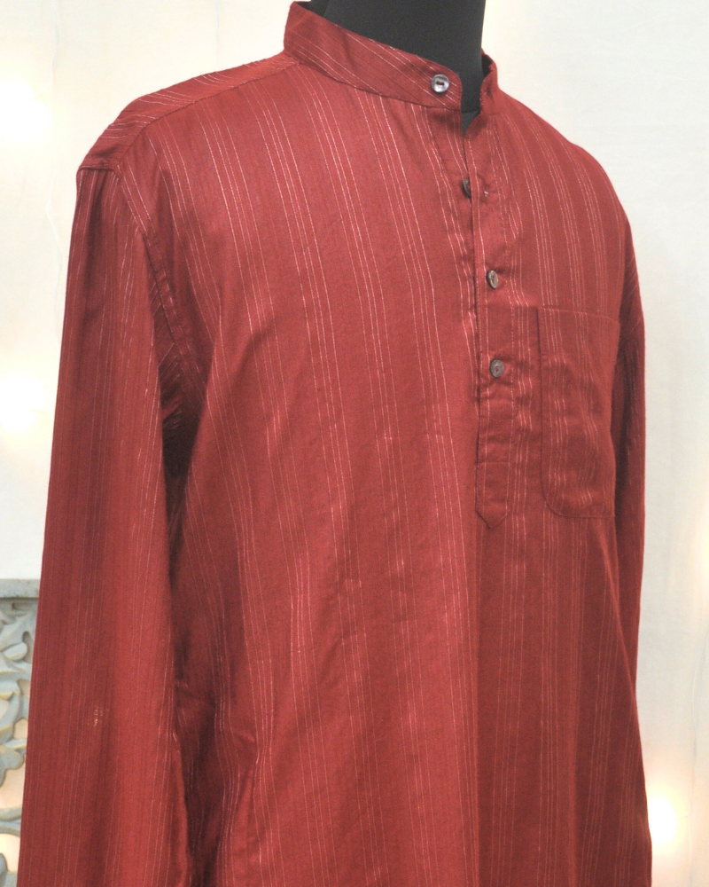 Men’s Silk Viscose Kurta with Silver Pinstripes – Deep Blue & Brick Red