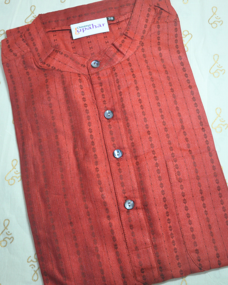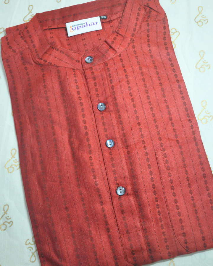 Men’s Silk Viscose Kurta with Woven Self Stripes – Brick Red