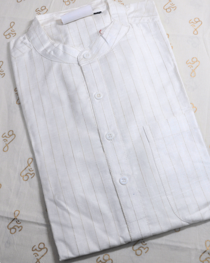 Men’s Silk Viscose Kurta with Woven Self-Stripes – Off White