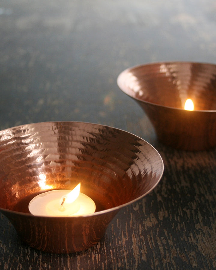 Some of the best things in life are simple. Like the warmth and sparkle of candle lights. And this elegant candle-holder is the ideal companion to your tea-light candles, reflecting multiple hues of copper and creating the perfect circle of light.