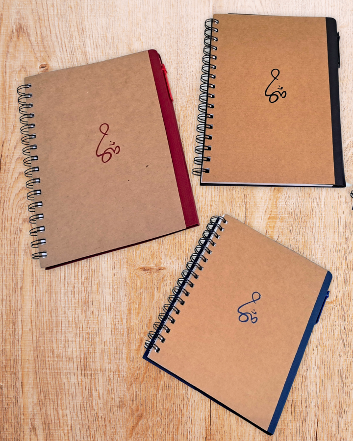 Elevate your everyday note-taking with this beautifully curated Eco Spiral Notebook Kit. Thoughtfully crafted with a natural kraft cover and Swami Chinmayananda’s signature Om symbol on the front, this notebook is both functional and meaningful.