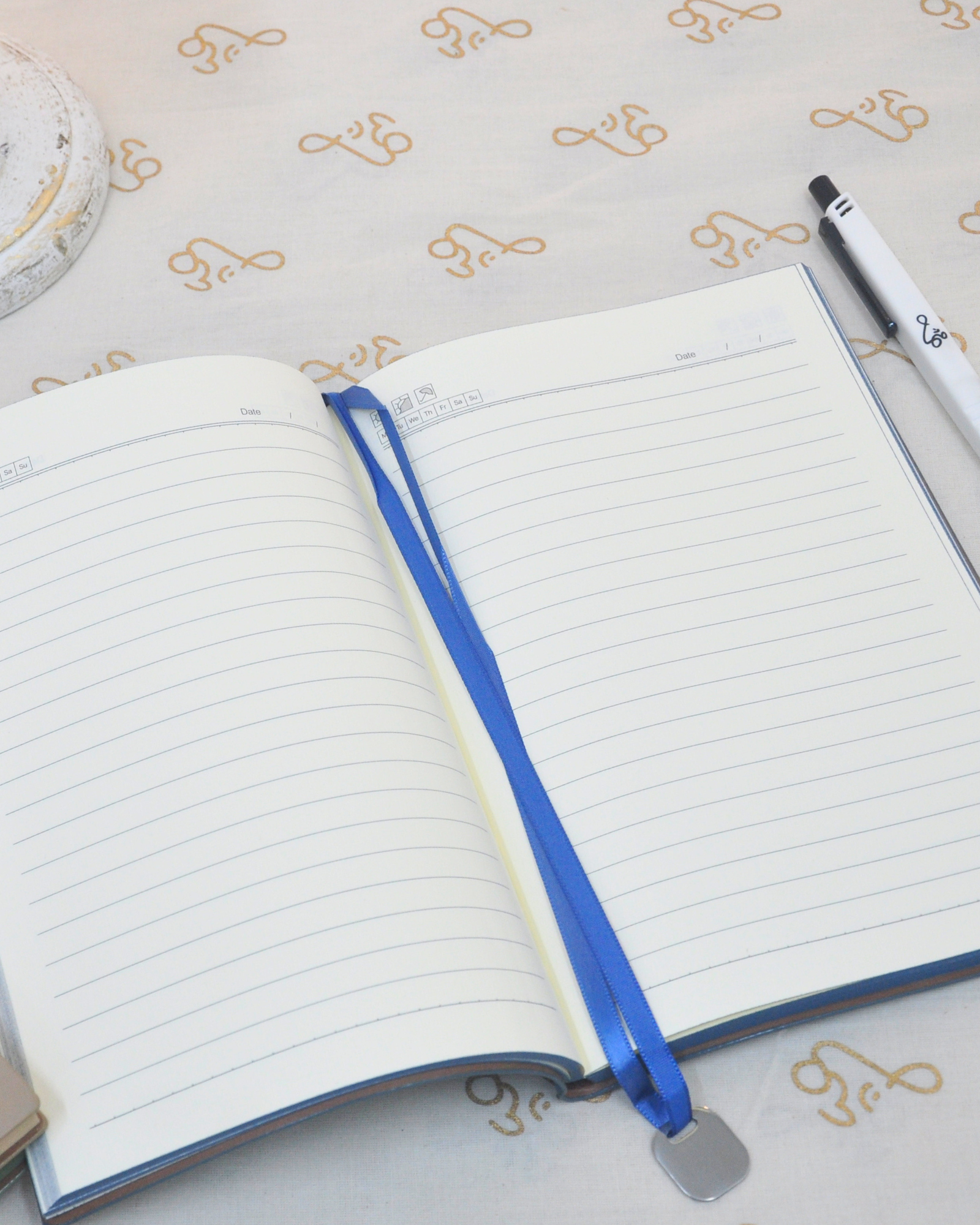 Elegant design – Textured leather-finish cover with gold Om embossing for a serene, premium look.