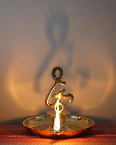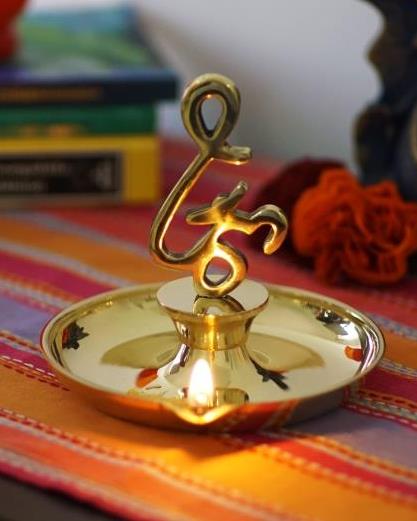 This beautifully handcrafted brass diya gracefully integrates the sacred 'Om' symbol—symbolizing universal peace and spiritual awakening. When illuminated, it casts a serene Om-shaped shadow, gently filling your surroundings with tranquility and a sense of divine presence.