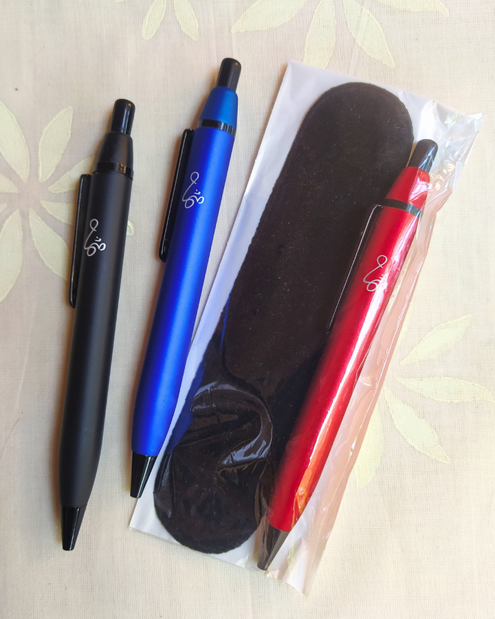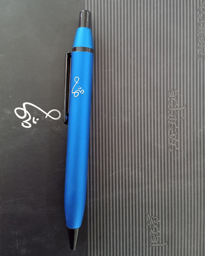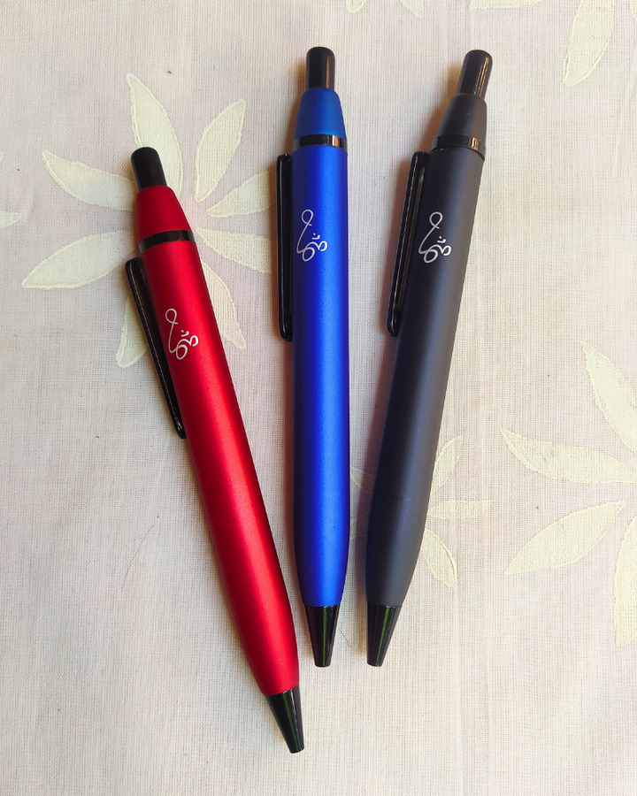 Write with ease and style using this sleek Curvy Metal Pen. With its smooth rollerball tip and blue ink, it delivers a clean, fluid writing experience every time. The curved, matte metallic body offers a premium feel, while Swami Chinmayananda’s etched Om adds spiritual grace.