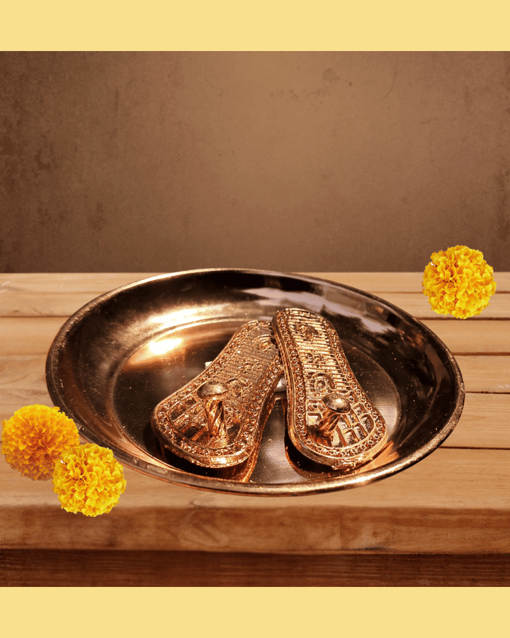 Perfectly sized at 3.5 inches, the plate and paduka set is compact, easy to place, and enhances the devotional ambience wherever it is kept.