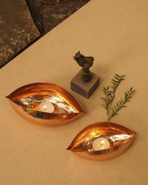 The Copper Pod is perfect for a windy evening running late into the night. It lights up and highlights the skillfully rendered beaten work of the Tambat artisan and his craft.