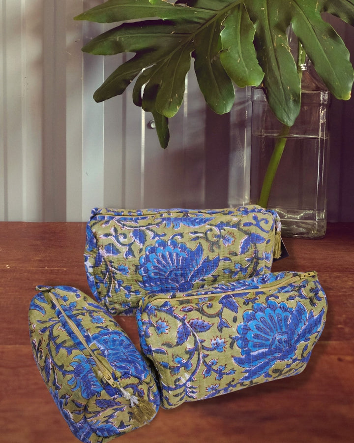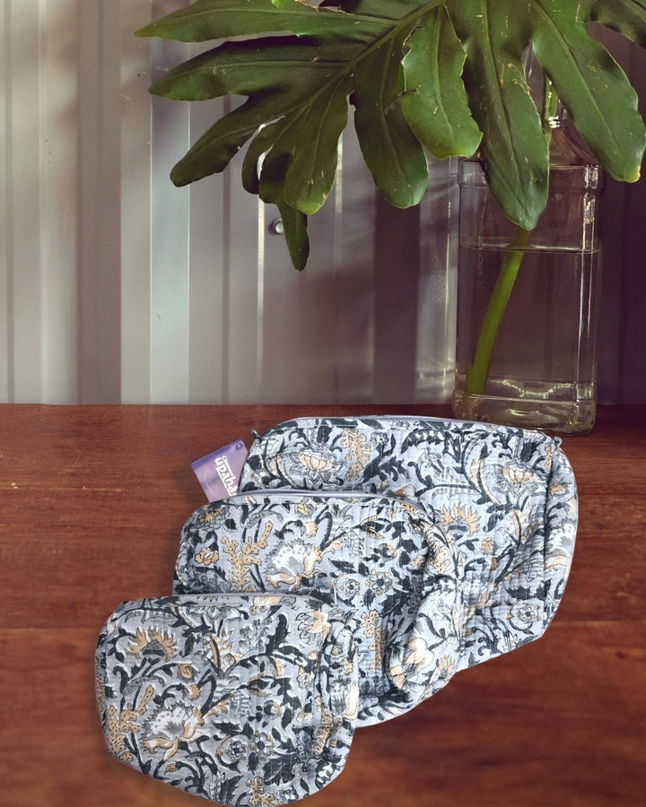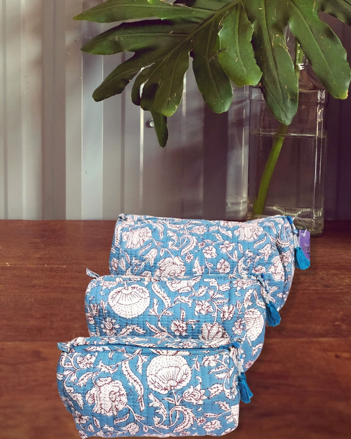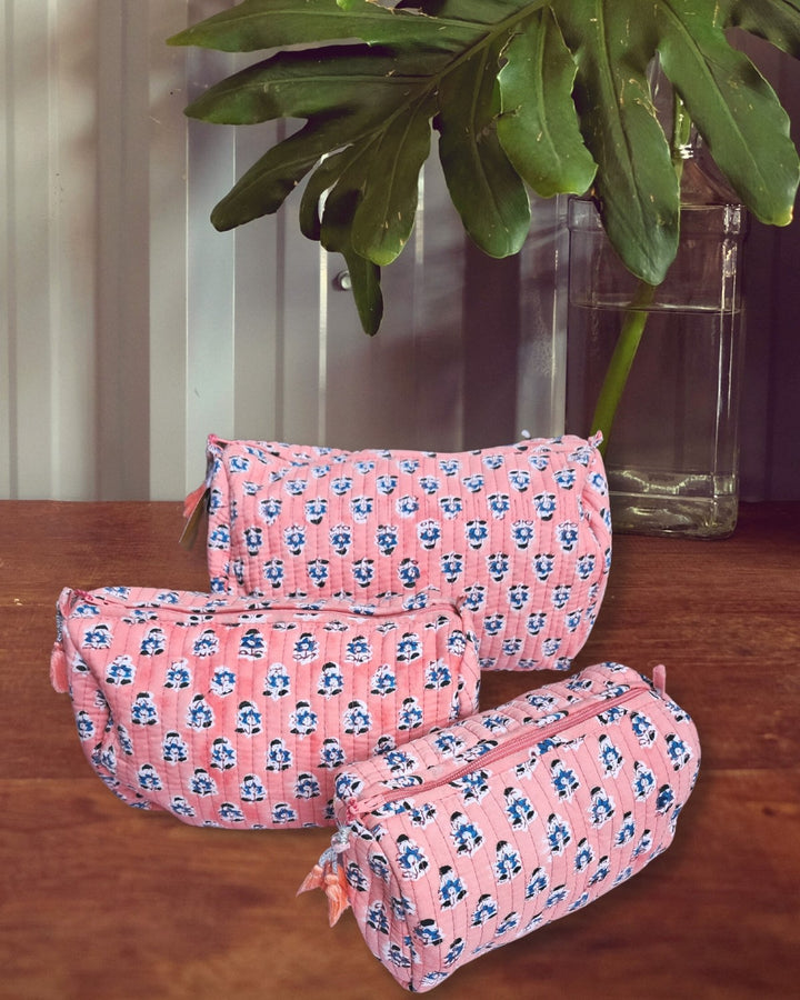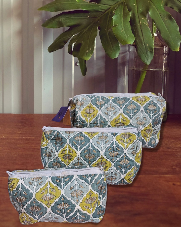Pouch: Block Print Quilted Wash Bags - Set of 3