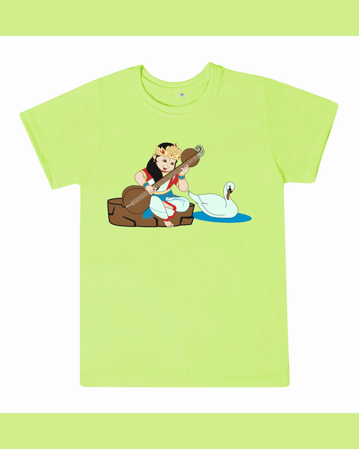 Made from soft, breathable cotton, these t-shirts are gentle on kids’ skin and perfect for everyday wear — whether it’s playtime, puja, or a festive gathering. Thoughtfully designed for children from 1yr to 12–13 yrs (sizes 2 to 12), they are a fun way to connect young minds with timeless stories and values.