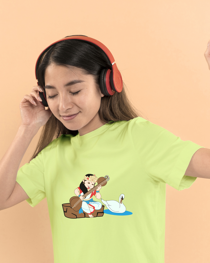 Our vibrant and playful screen-printed t-shirts bring to life endearing characters from Hindu mythology, designed especially for young hearts. These tees feature delightful illustrations of beloved deities like Hanuman, Ganesha, Shiva, Rama, Krishna, and Lakshmi — all drawn from the cherished Bala Katha series of books published by Chinmaya Mission.