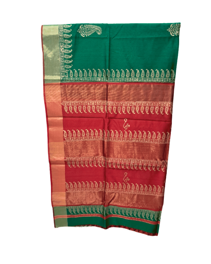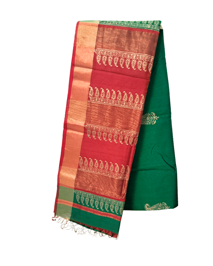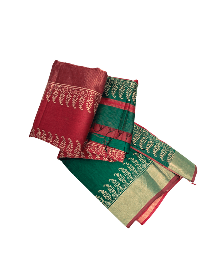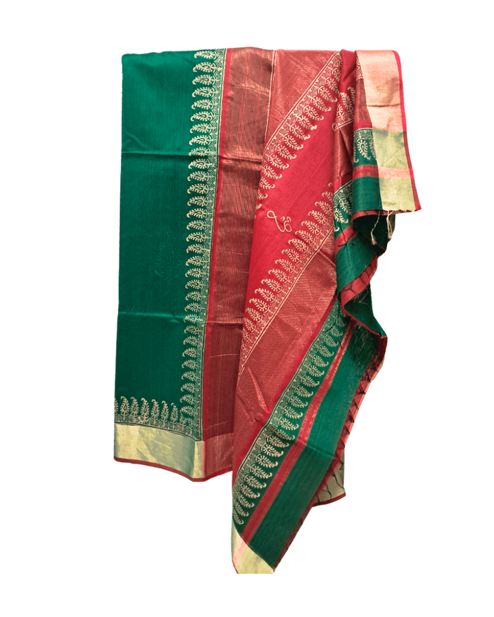 Saree: Maheshwari Silk-Cotton Big Zari Border - Red & Green